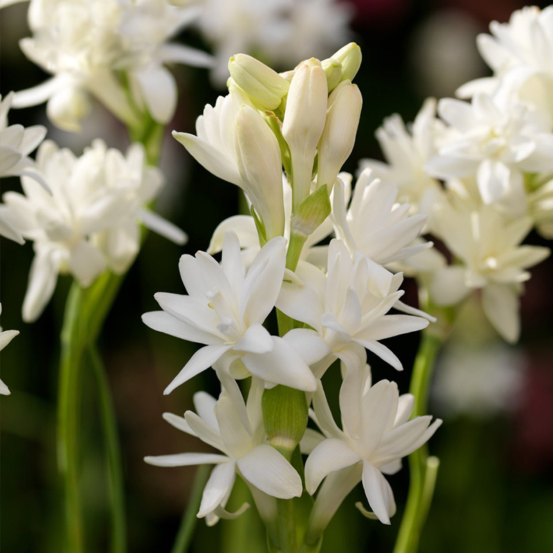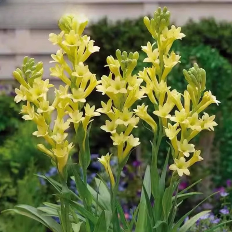 晚香玉别名夜来香、月下香。性喜温暖、湿润、阳光充是通风良好的环境,耐高温、稍畏寒、忌水涝。适生于黏质壤上成壤土。在我国大部分地区春季种植,夏季开花,冬季体眠,花期7-10月。繁殖方法采用分球繁殖。