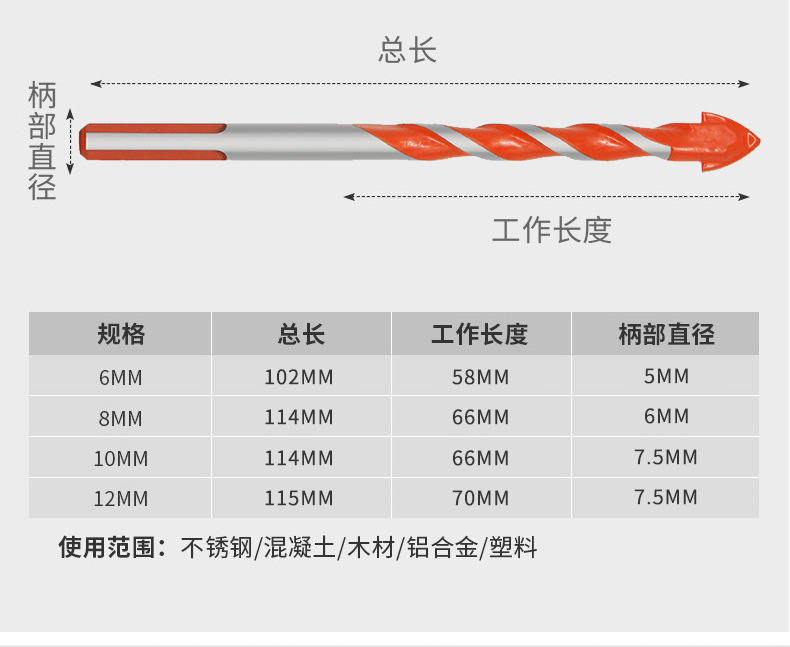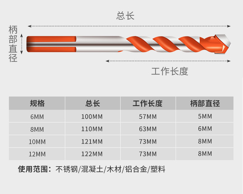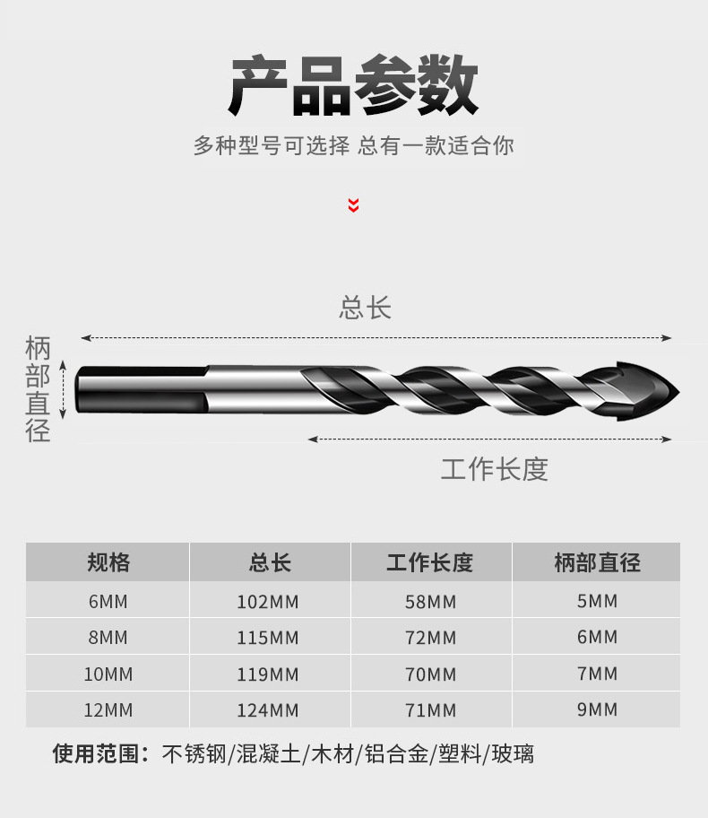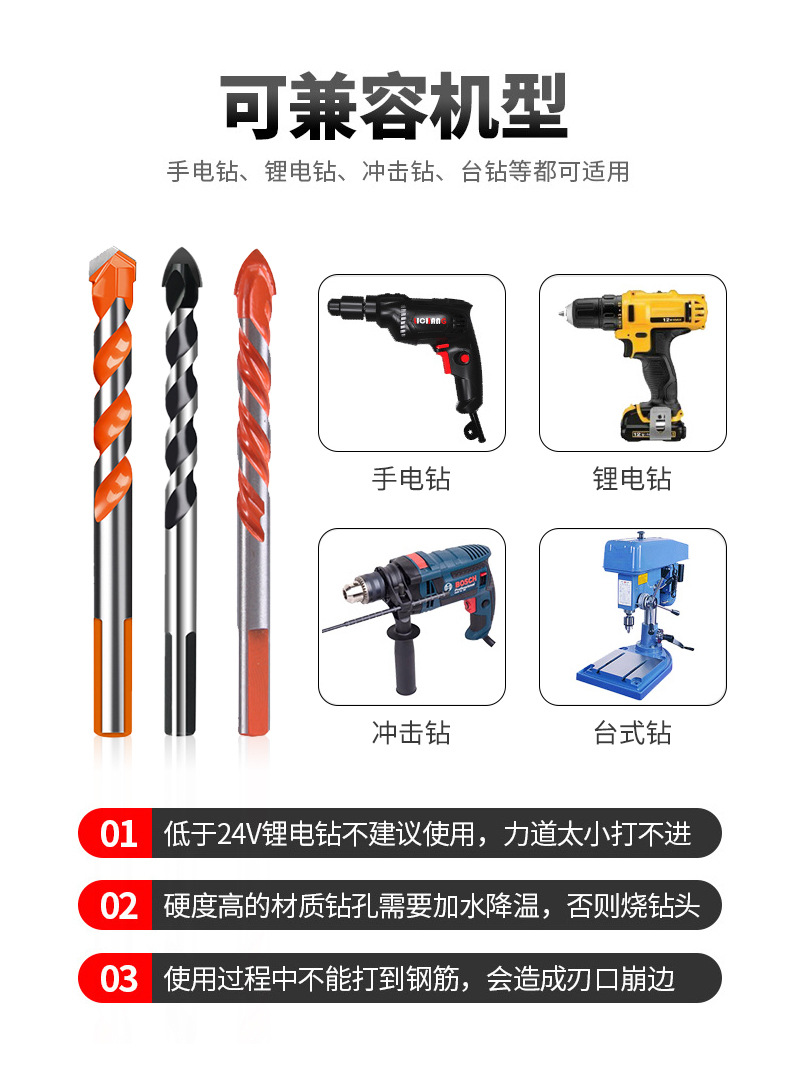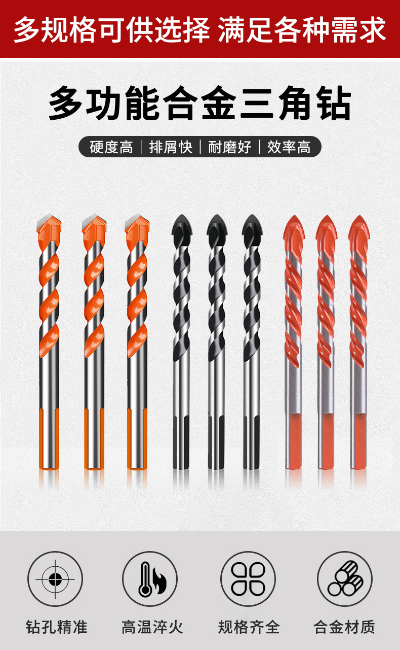 Многофункциональное сверло треугольника сверла сплава стеклянной стены плитки сверла 6 мм цемента конкретного карбида бурового наконечника