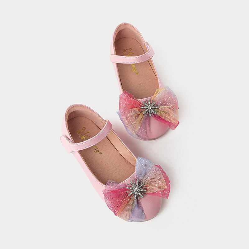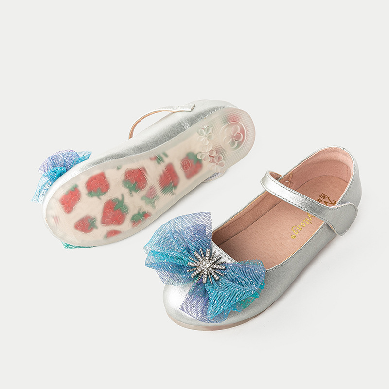 Туфли принцессы Эльзы для девочек с бантом, мягкие детские туфли на плоской подошве, милые лоферы весны и лета 2025 года.