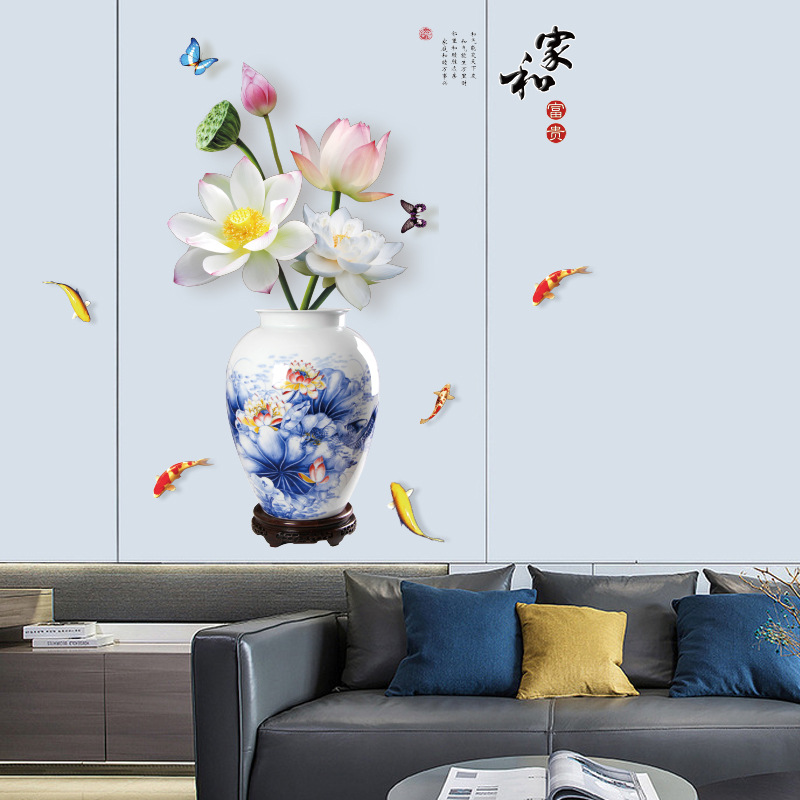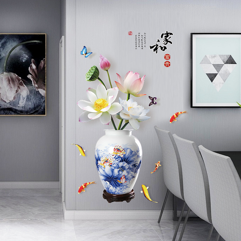 Новые китайские креативные наклейки ваза цветок настенные наклейки Прихожая кабинет диван спальня теплые декоративные наклейки SK9328