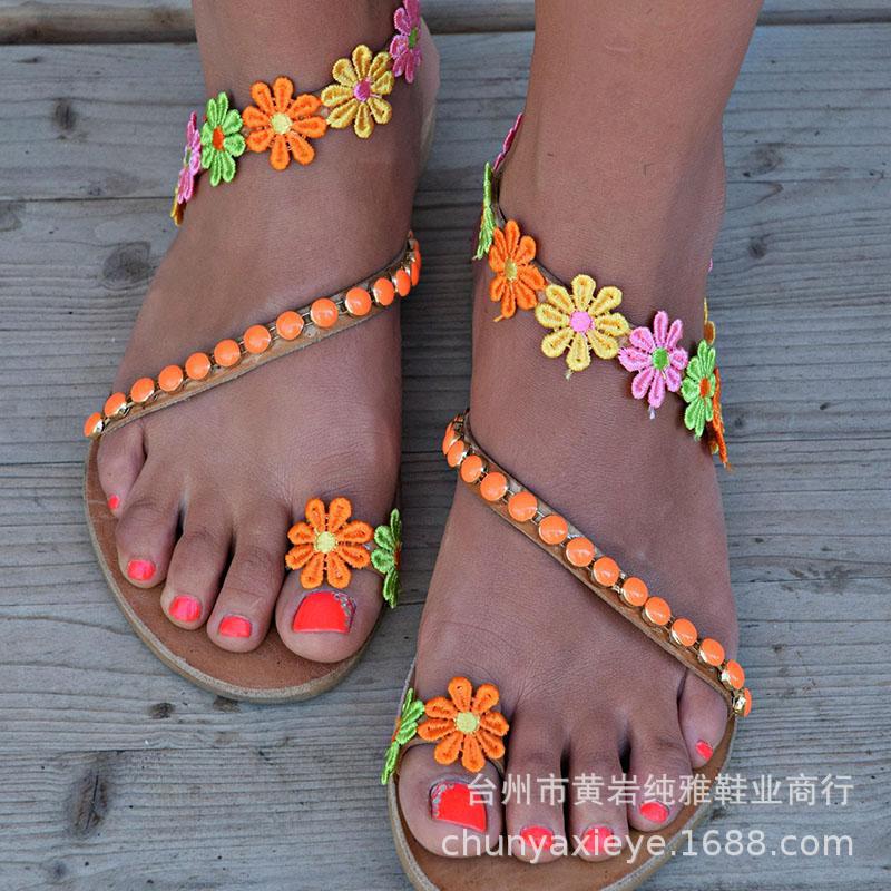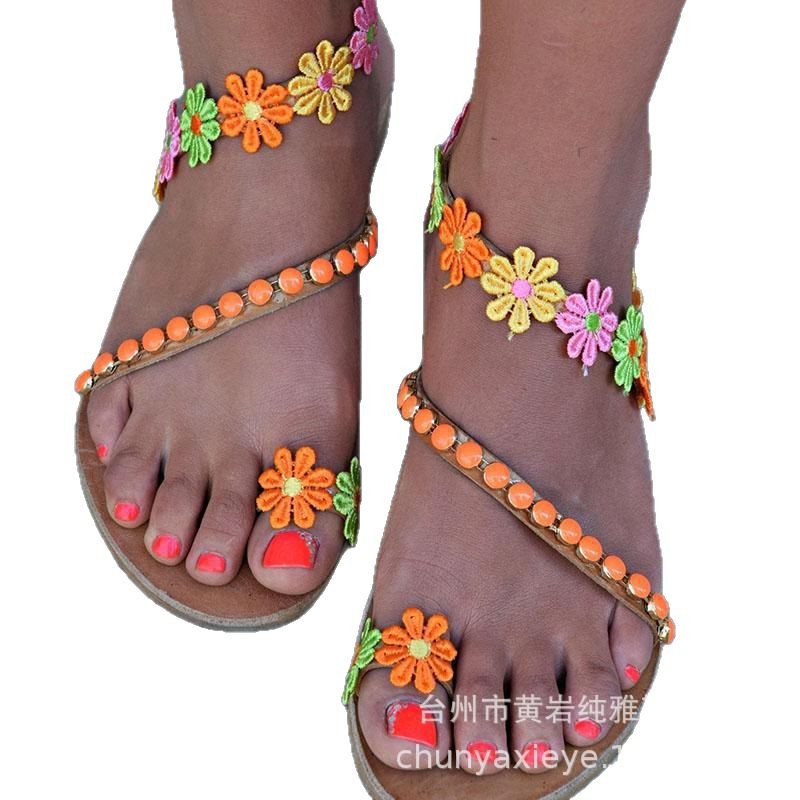 Женские сандалии на плоской носком стиле Wish для внешней торговли, популярные летние сандалии большого размера 40-43