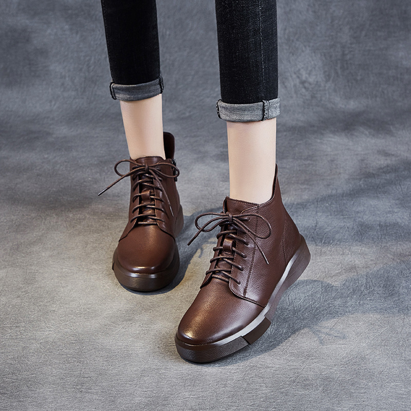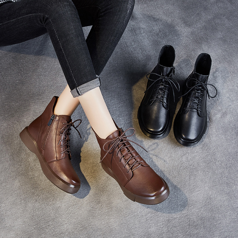 Популярные осенне-зимние ботинки Мартин 2025 года, короткие ботинки из натуральной кожи первого слоя, женские ботинки из натуральной кожи на шнуровке, нескользящие ботинки на мягкой подошве.