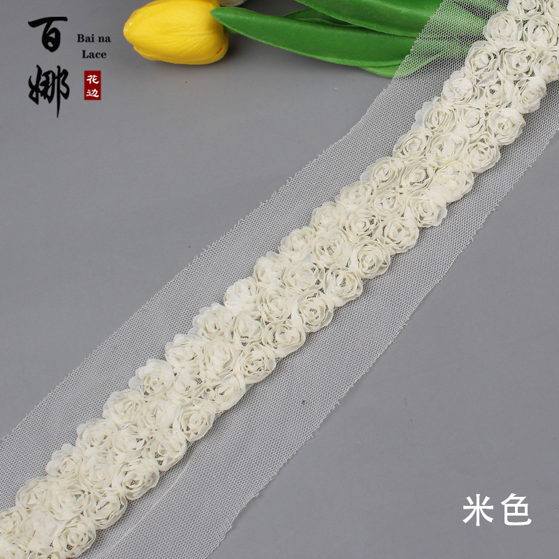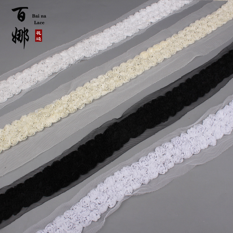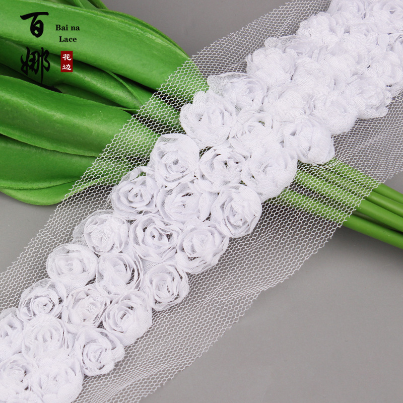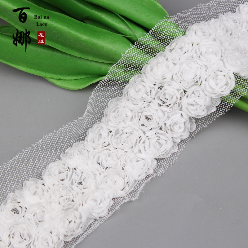 3-рядная Роза трехмерная тарелка с цветочной сеткой Шифоновое Платье Свадебное кружево Весна и лето новая ткань для одежды