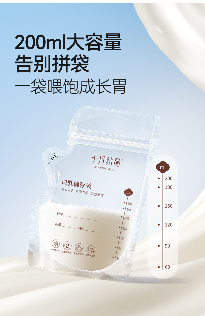 Октябрьские пакеты для хранения грудного молока Crystal Spout-Type, пакеты для хранения грудного молока, герметичные пакеты для хранения молока в холодильнике, сохраняющие свежесть, 200 мл, SH5112