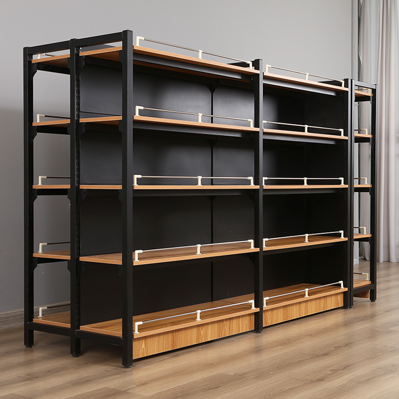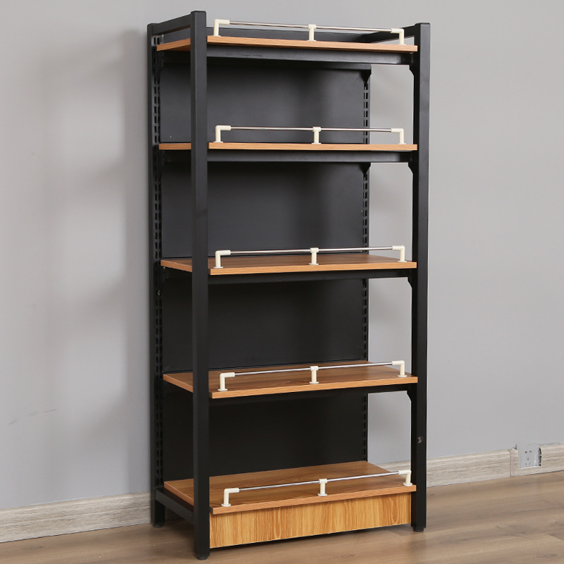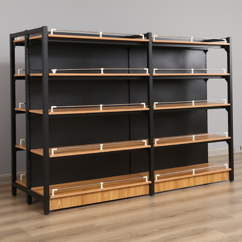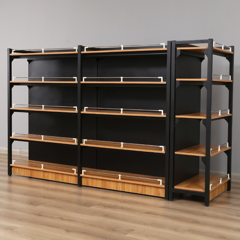 Полки для магазинов, комбинированные многослойные стеллажи из стали и дерева, многофункциональные многофункциональные стеллажи для закусок среднего класса, сборные полки для супермаркетов