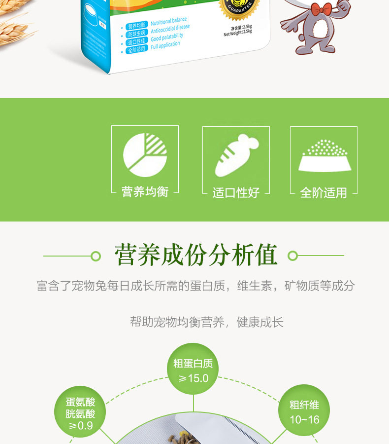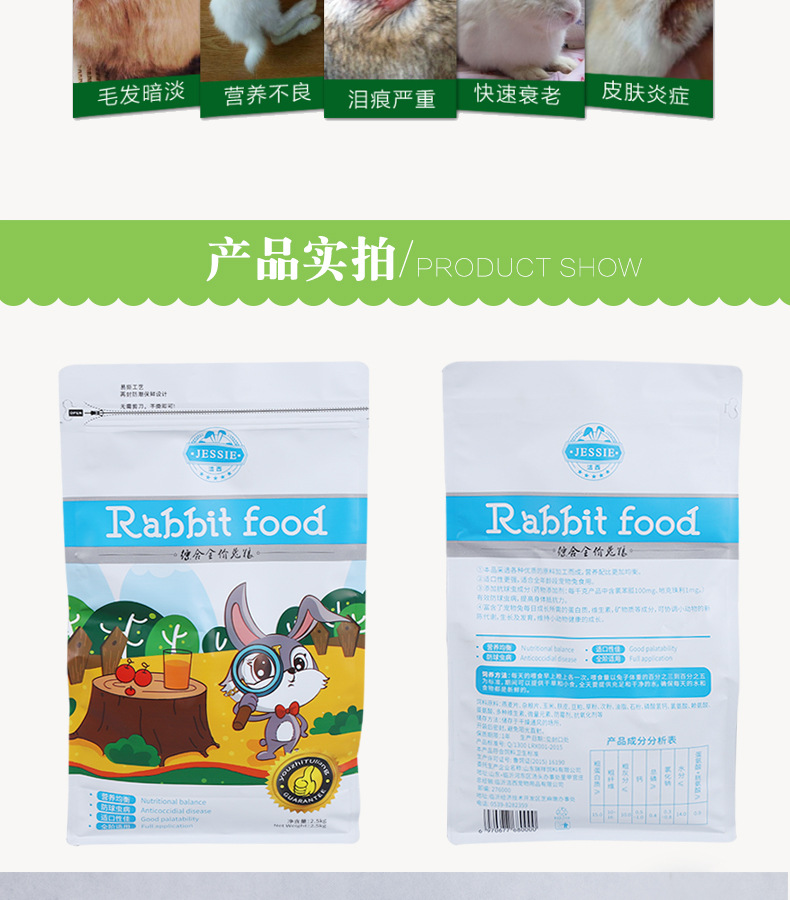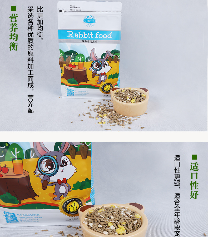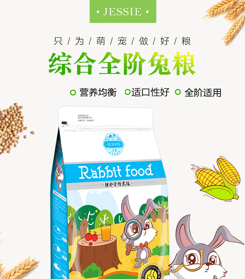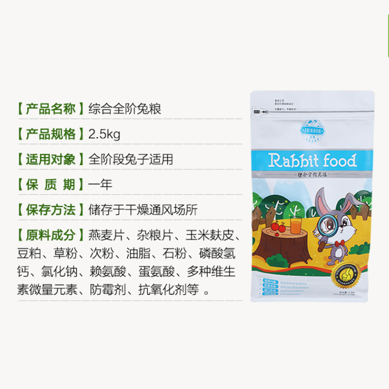 Jiexi Кролик Еда Pet Кролик Корм Молодой Кролик Взрослый Кролик Еда Ухо-носом Кролик Комплексный Кролик Еда 2,5 кг