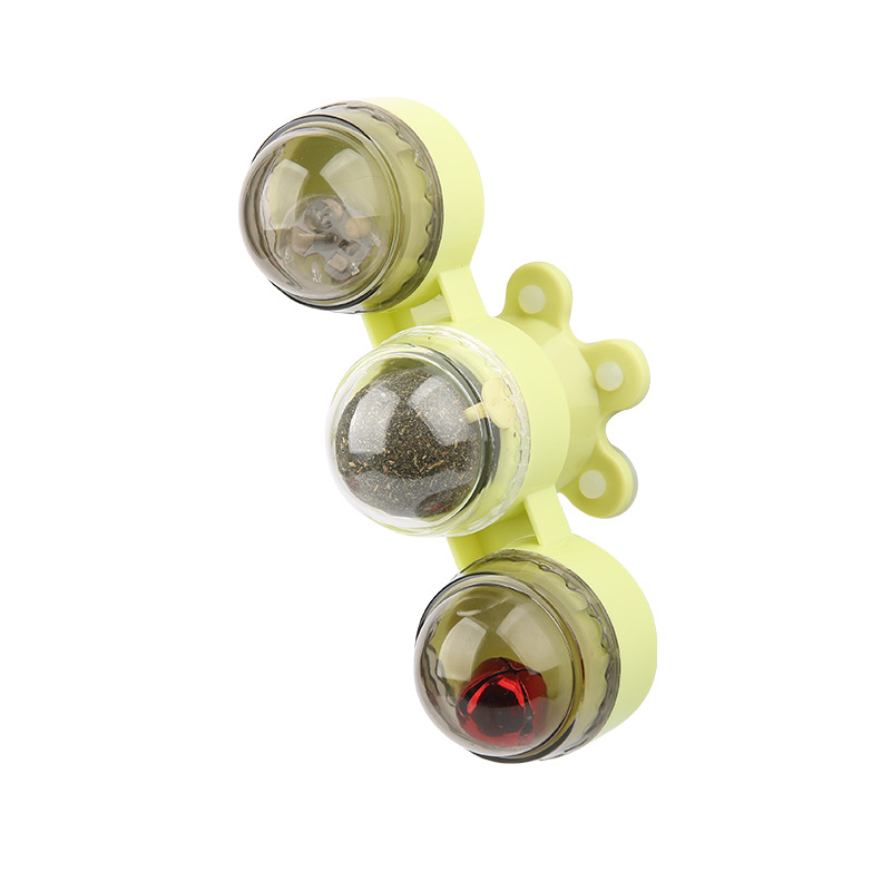 转转风车猫玩具,吸盘底座,可以吸在地板上,门窗上,桌底下,想吸哪里就吸哪里!风车的圆形风叶上有2个透明仓,可以放置发光球、薄荷球吸引猫咪,轻轻拨动风车就会旋转,让猫咪爱不释爪,中间还有蹭毛蹭脸器,所有设计都贴合猫咪设计,舒适的自娱自乐。一个玩具,多种用途。