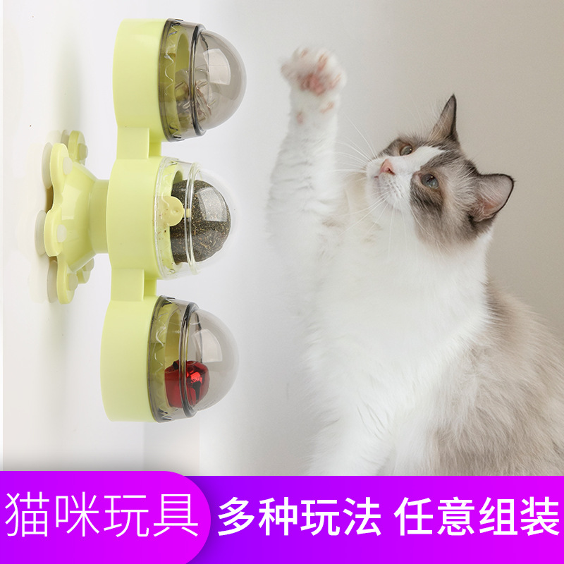 Pet вращающаяся игрушка ветряная мельница присоски светящаяся вращающаяся игрушка кошачья мята мяч с колокольчиком игрушка