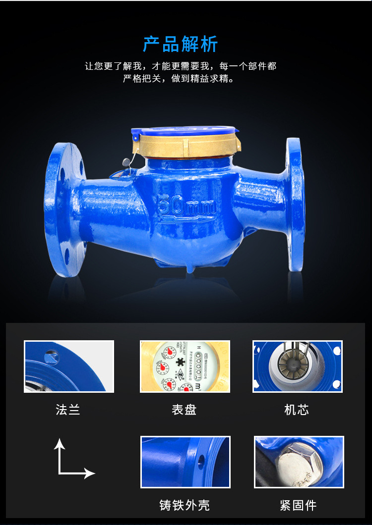 Большой диаметр роторный фланцевый счетчик воды обычный цифровой механический счетчик водопроводной воды промышленный чугунный шкафчик DN40-80