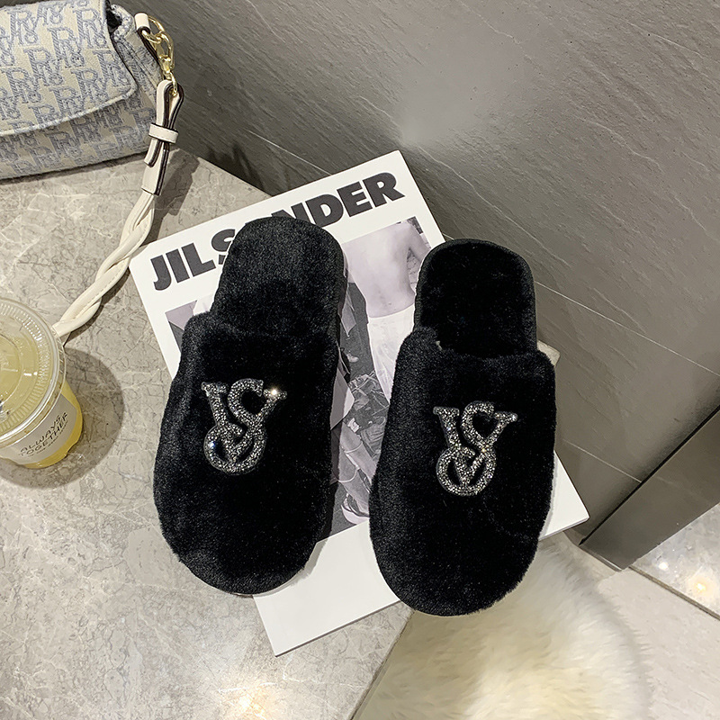 Хлопковые тапочки Baotou Mao, женские осенне-зимние новые теплые тапочки 2021 года, домашние яркие тапочки с бриллиантами, модная верхняя одежда, женская обувь