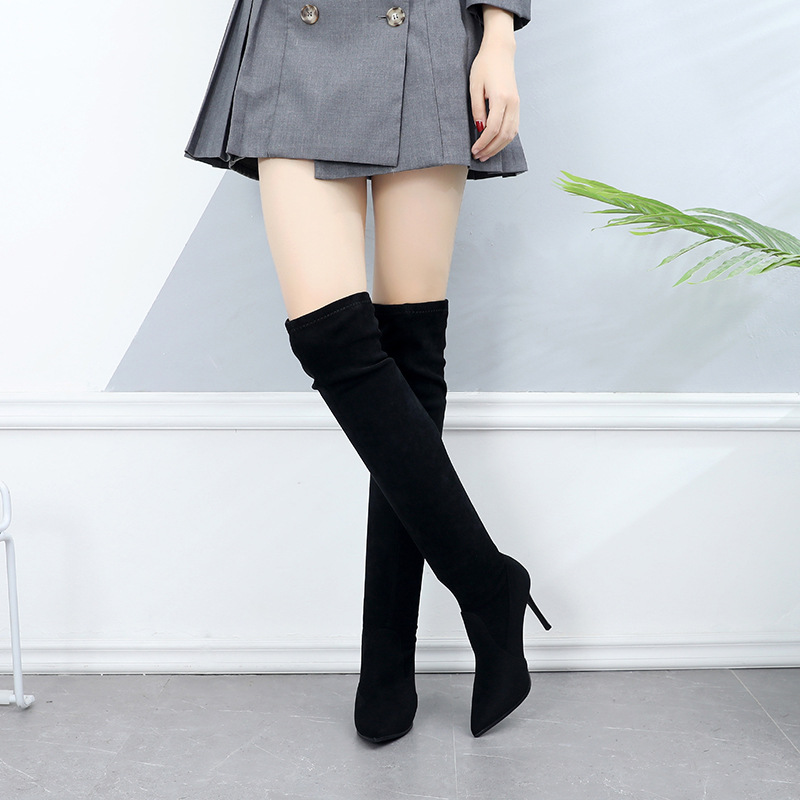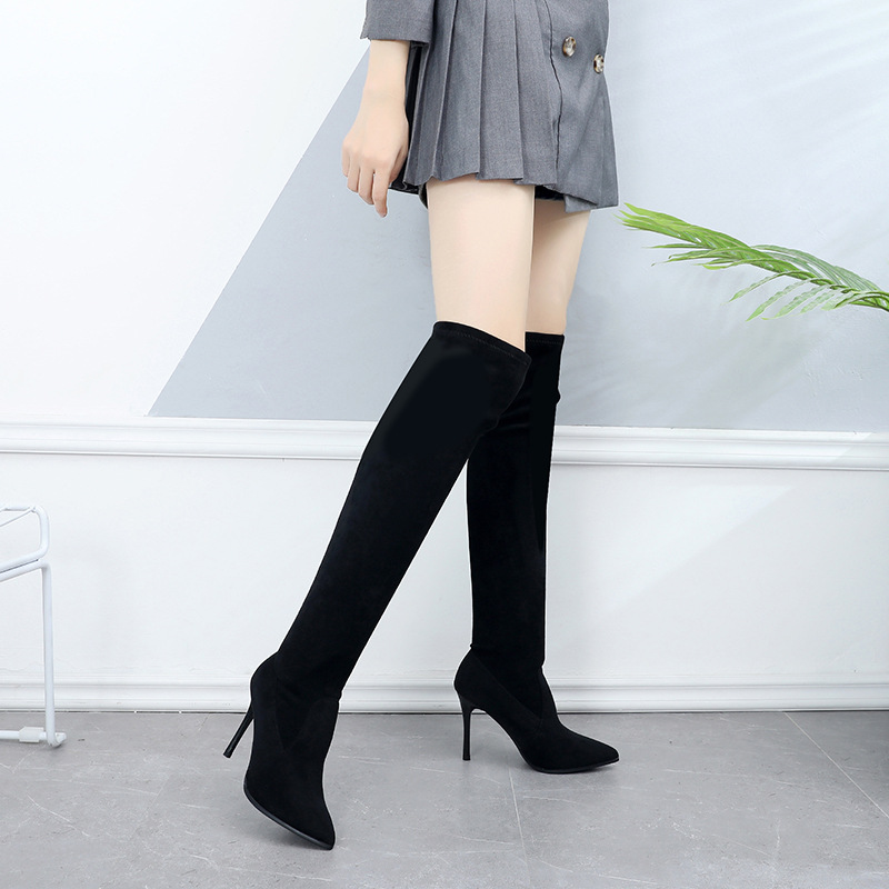 Новые женские длинные сапоги на тонком каблуке, эластичные узкие сапоги выше колена, сапоги на высоком каблуке с острым носом, маленькие мужские сапоги