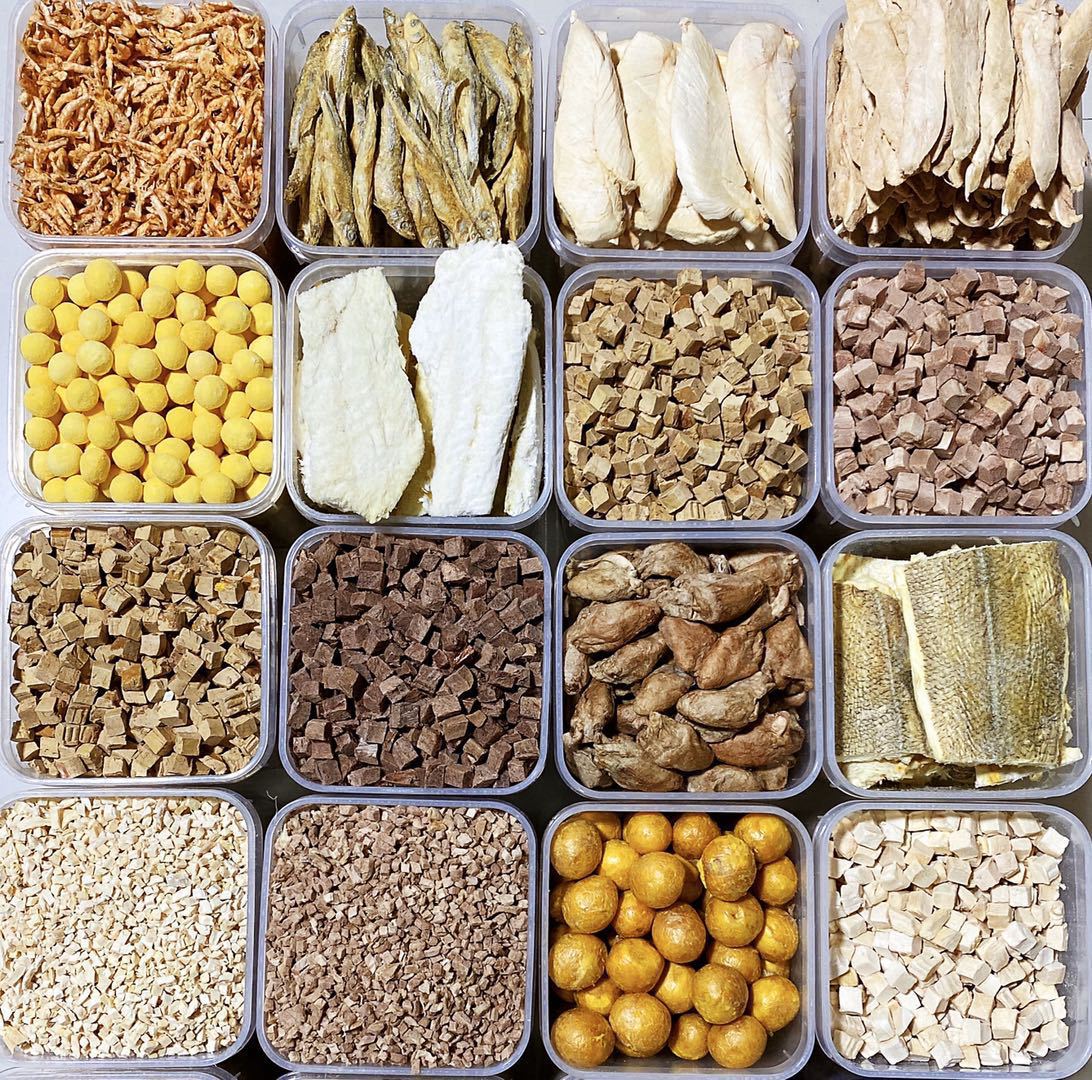 Мясо утки 500 г (уменьшить огонь до черного подбородка); Цельная куриная грудка 500 г; Цельная Утиная грудка 500 г; Курица 500 г; Целое перепелиное 250 г; Яичный желток зерен 500 г (Красивые волосы); 500 г цельного яичного желтка; Куриное сердце 500 г; Куриная печень гранулы 500 г; Ниуливер гранулы 500 г; Лосось 500 г (красивые волосы); Смешивая бочонок 500 г; Сублимированная сырая косточка Пэтти 500 г; Сублимированные сырые костно-мясные стрипсы 500 г