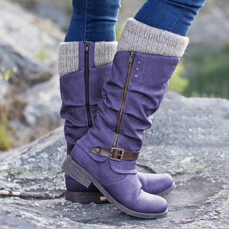 Независимые станции взрывы больших размеров женские сапоги с длинными трубками 2021 Новые женские сапоги на толстом каблуке с боковой молнией, шерстяные женские сапоги Amazon