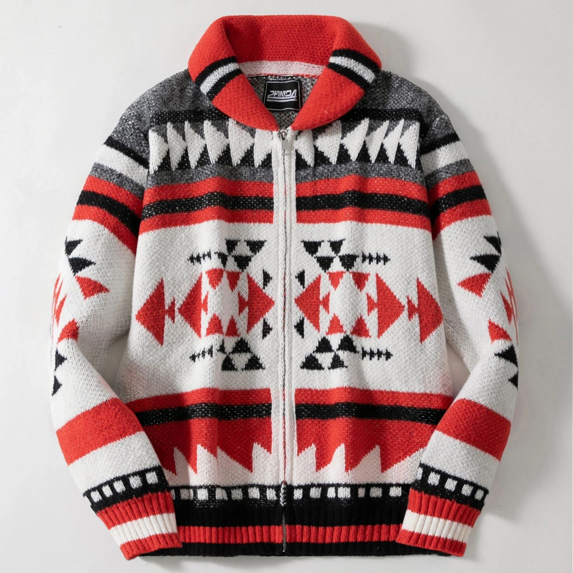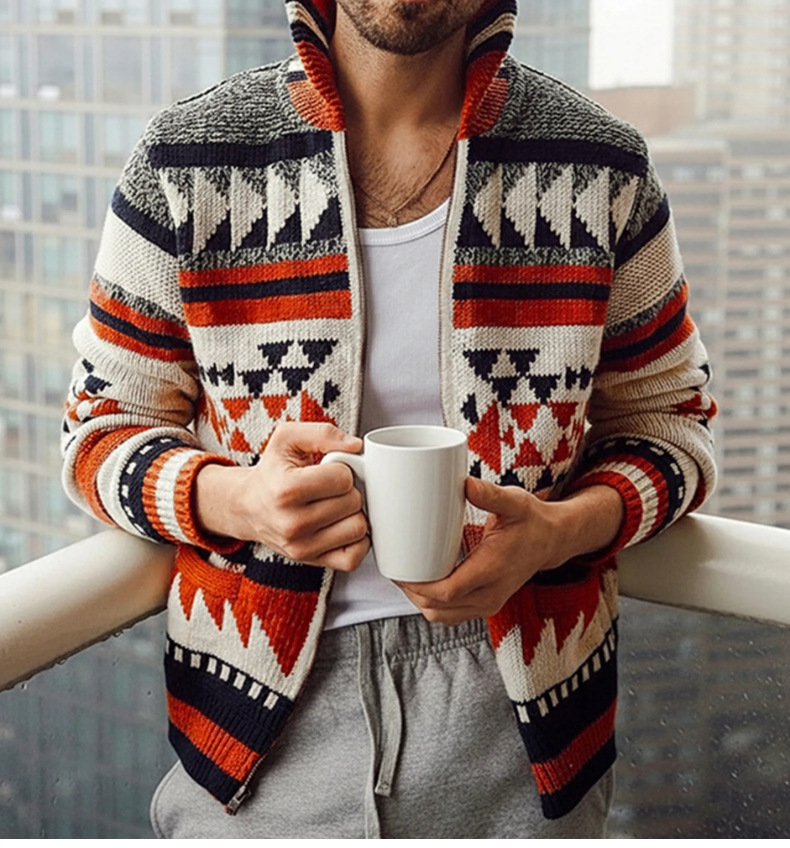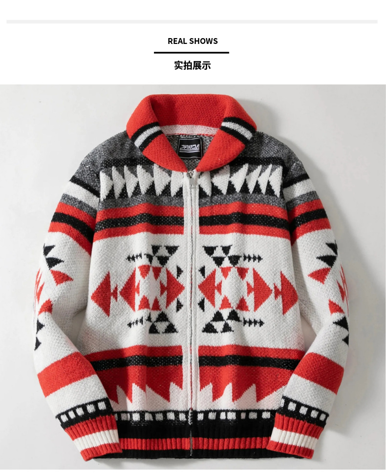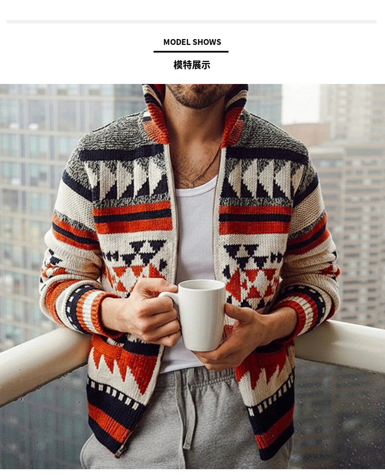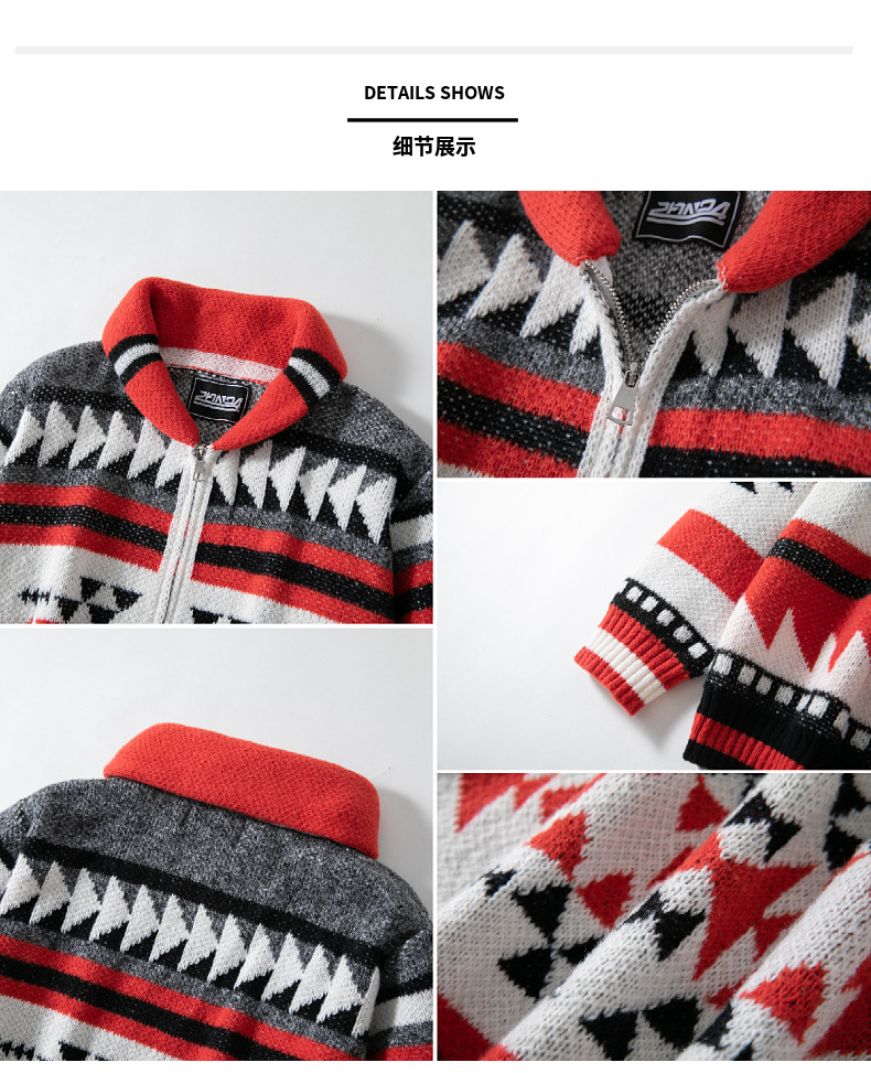 Внешняя торговля Новая мужская осенне-зимняя куртка-кардиган на молнии, европейский и американский жаккардовый свитер с длинным рукавом и лацканами для мужчин SY0012