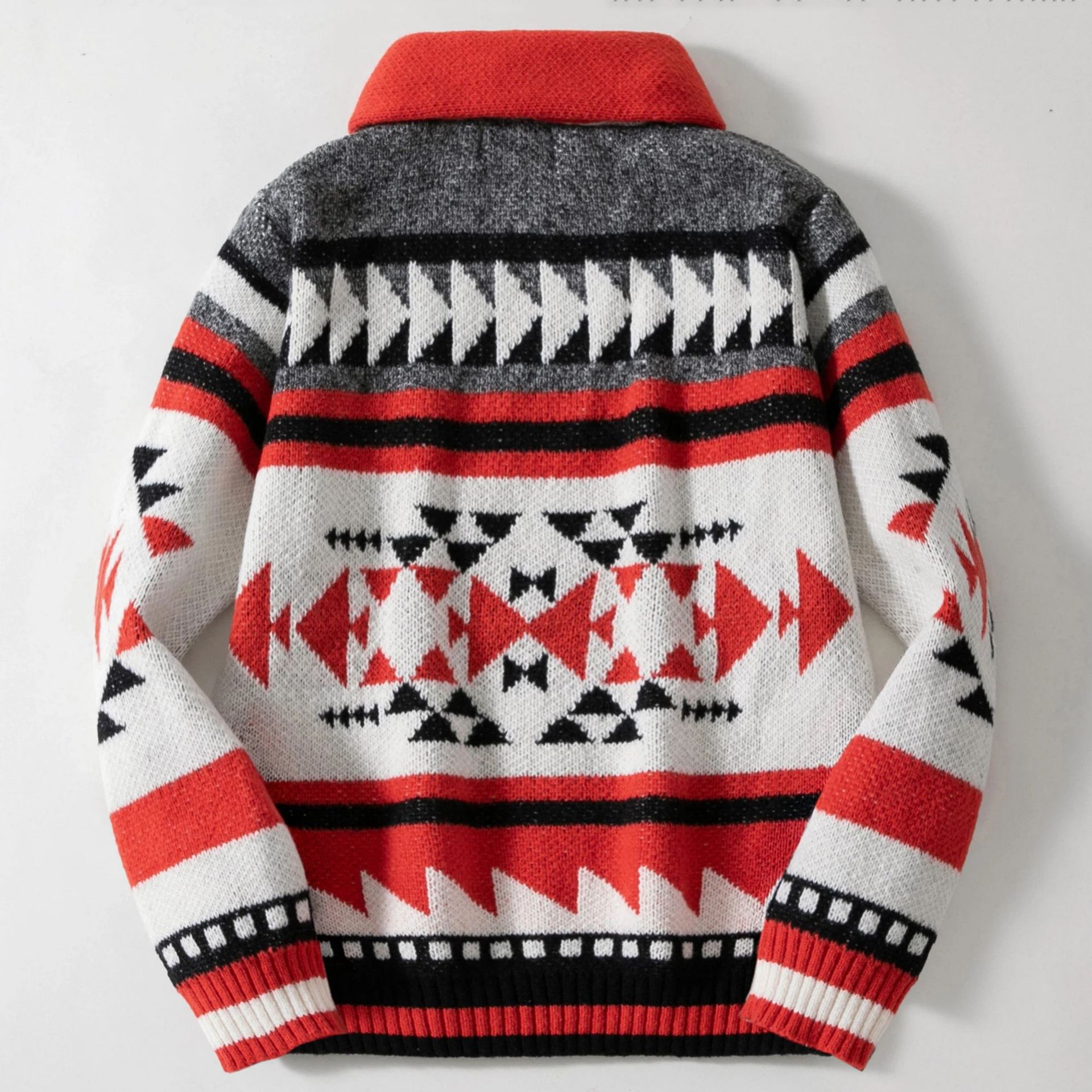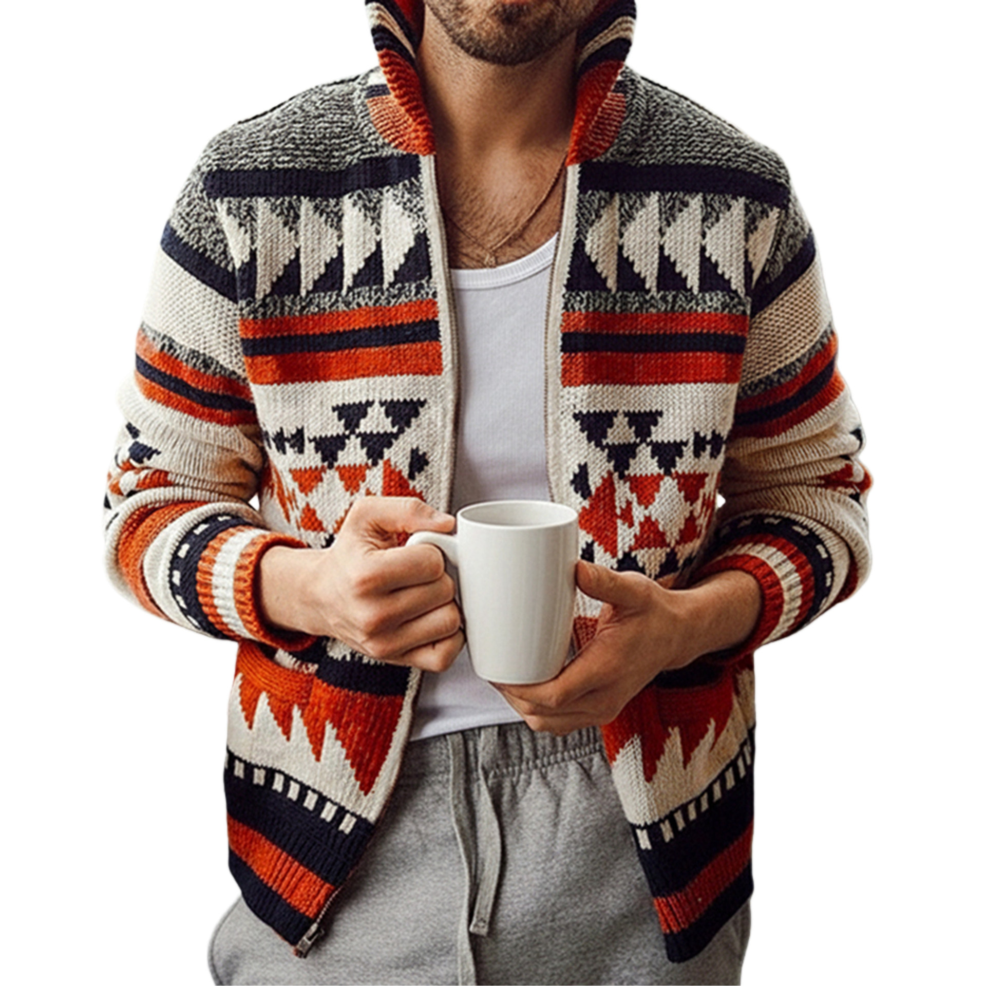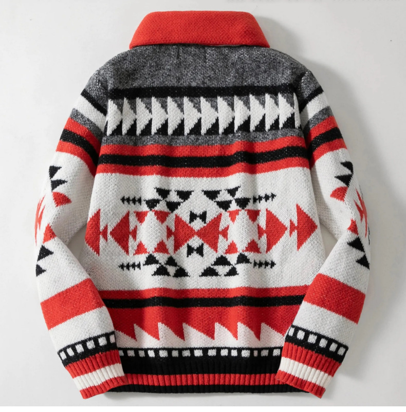 Внешняя торговля Новая мужская осенне-зимняя куртка-кардиган на молнии, европейский и американский жаккардовый свитер с длинным рукавом и лацканами для мужчин SY0012
