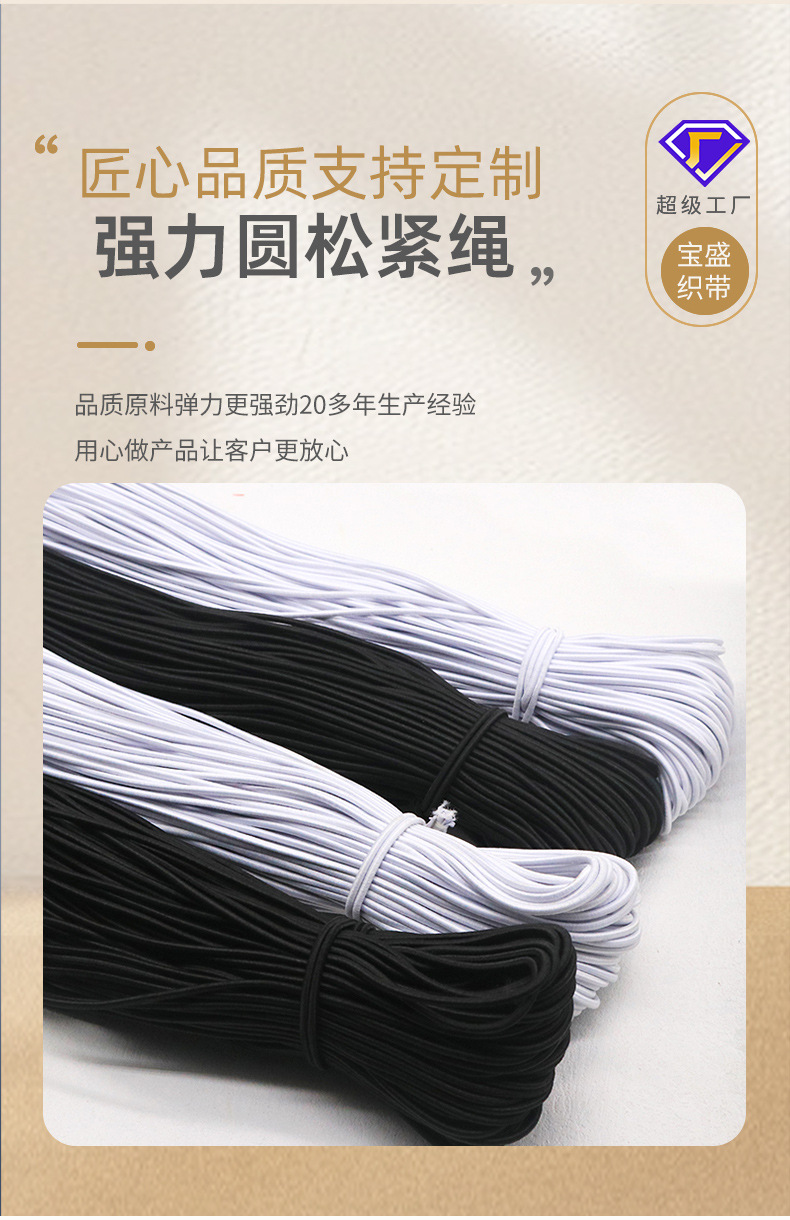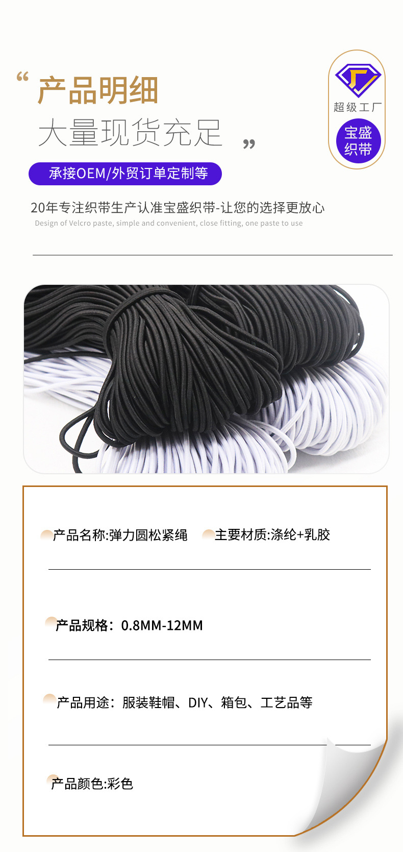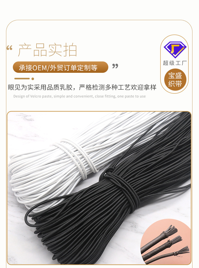 Латексная эластичная веревка производителя, сухожильная веревка, высокоэластичная круглая резинка, черно-белая круглая эластичная одежда, обувь и головные уборы, эластичная веревка по краю.