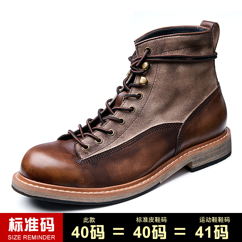 Новые мотоциклетные кожаные ботинки, мужские винтажные британские БОТИНКИ Martin из натуральной кожи, мужские высокие ботинки для спецодежды, универсальный Средний топ с флисовой подкладкой