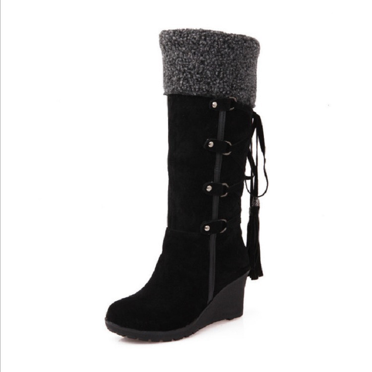 Ботинки больших размеров 2021 Новые европейские и американские внешние торговые кружевные высокие сапоги с кисточками зимние сапоги на склоне каблука Заводской магазин