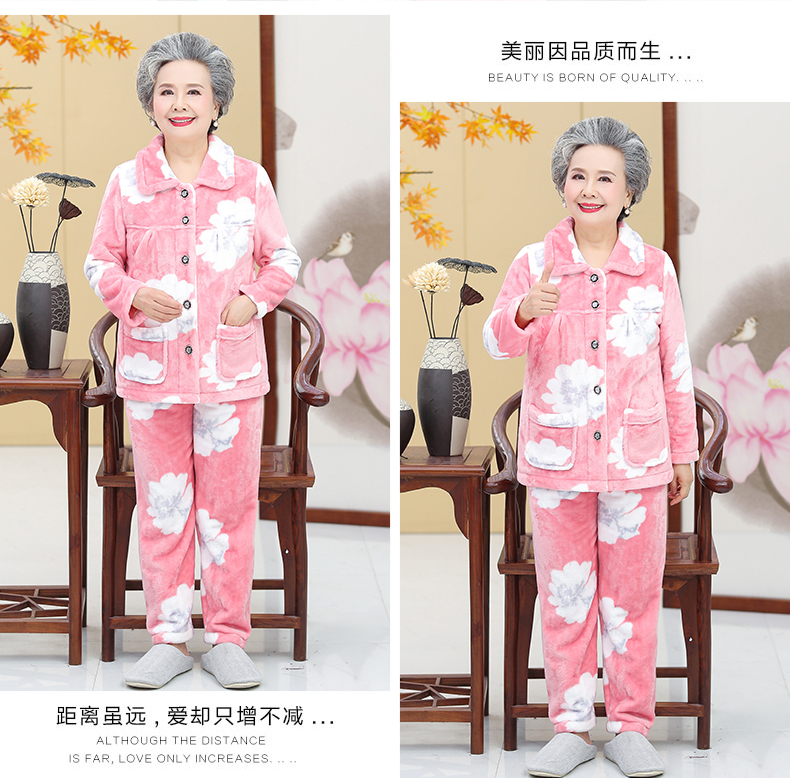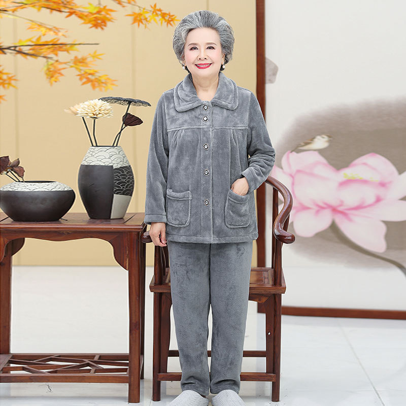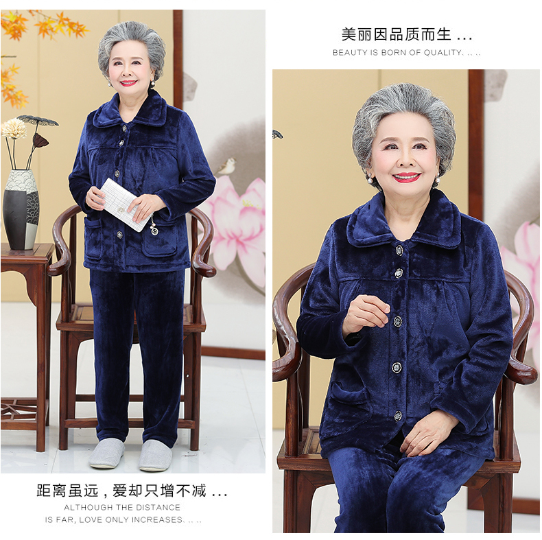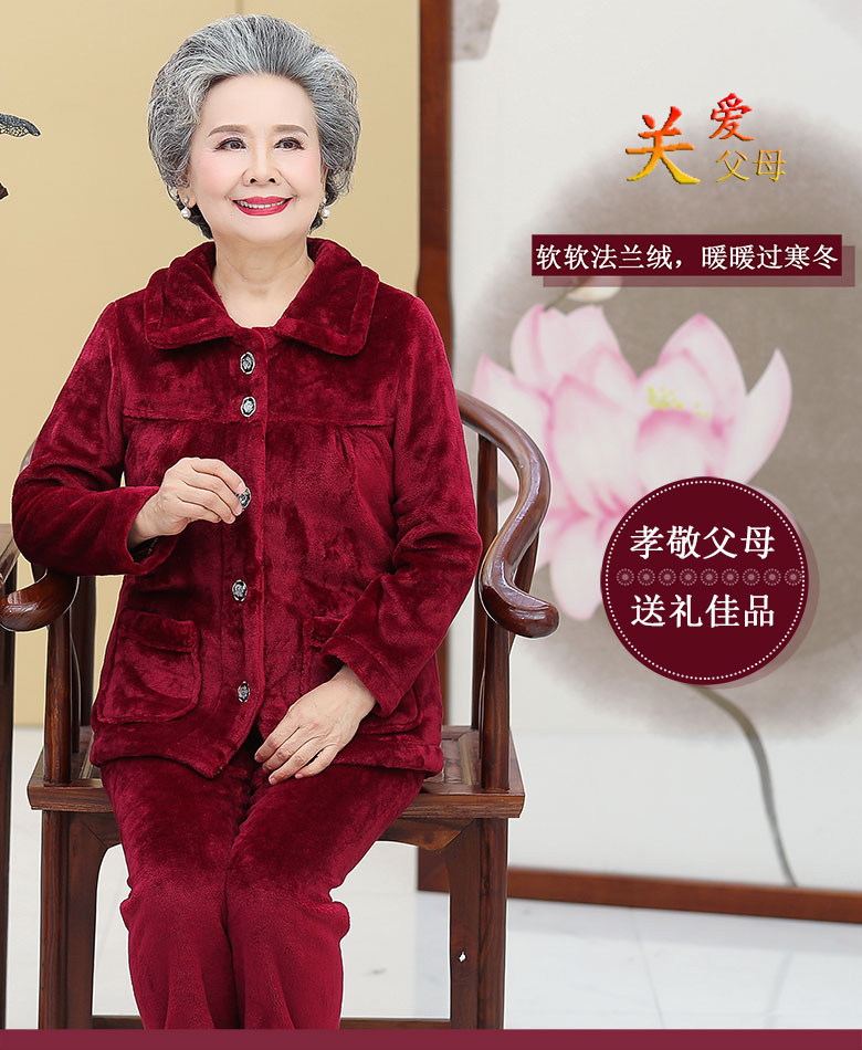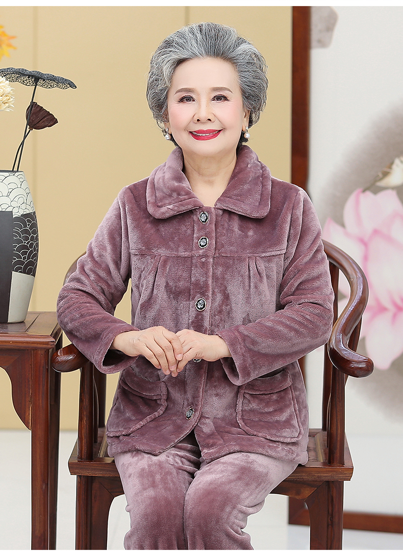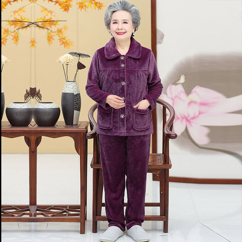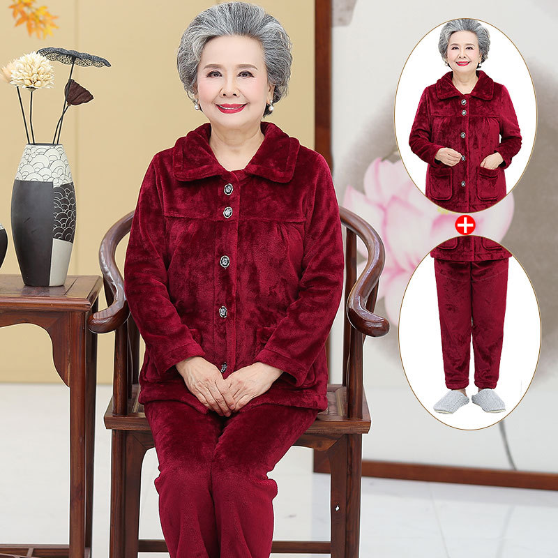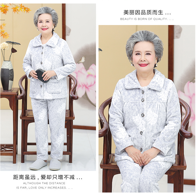 Утолщенные фланелевые пижамы для среднего и пожилого возраста, Женская осенне-зимняя одежда для мам, 60, Свободная Домашняя одежда больших размеров, костюм для бабушки