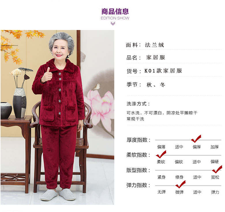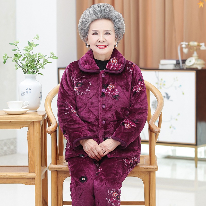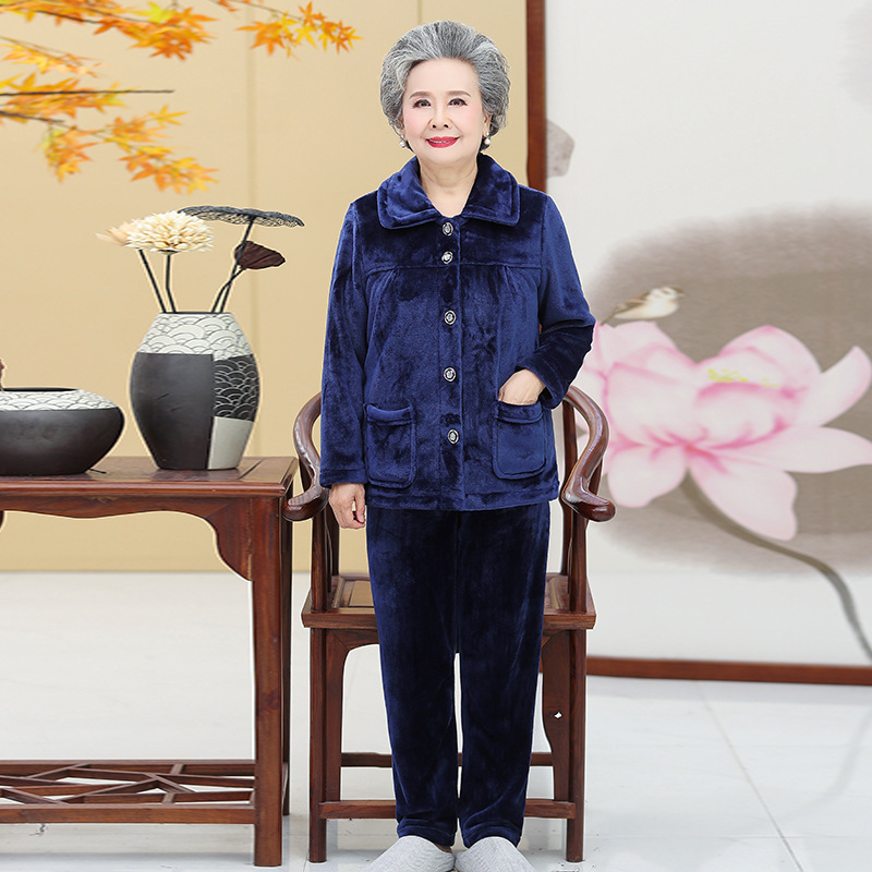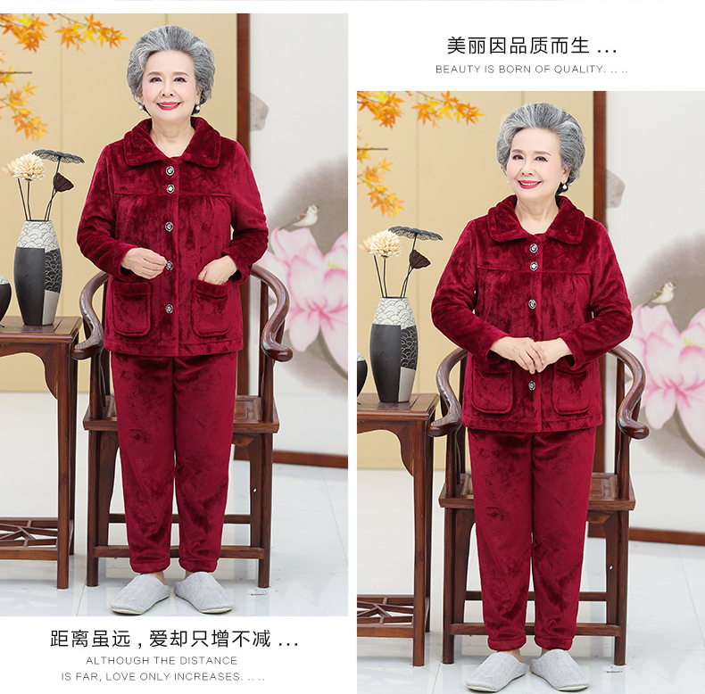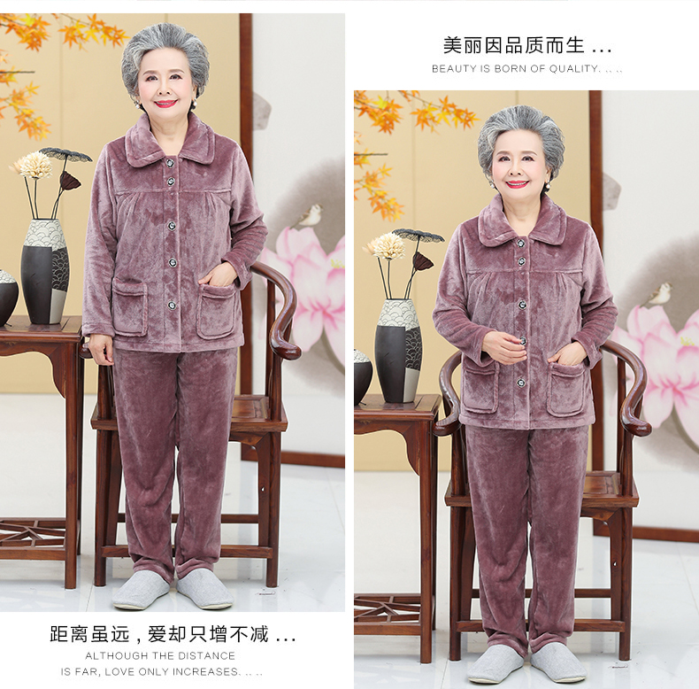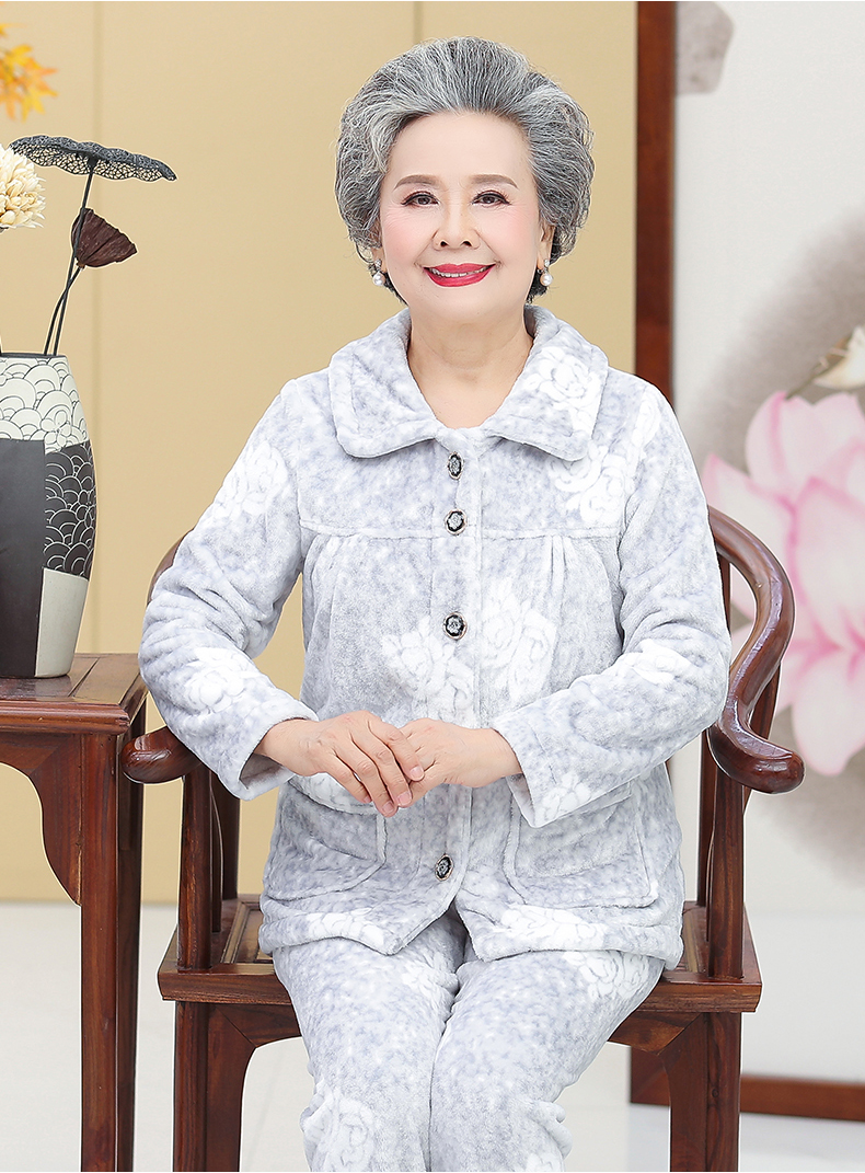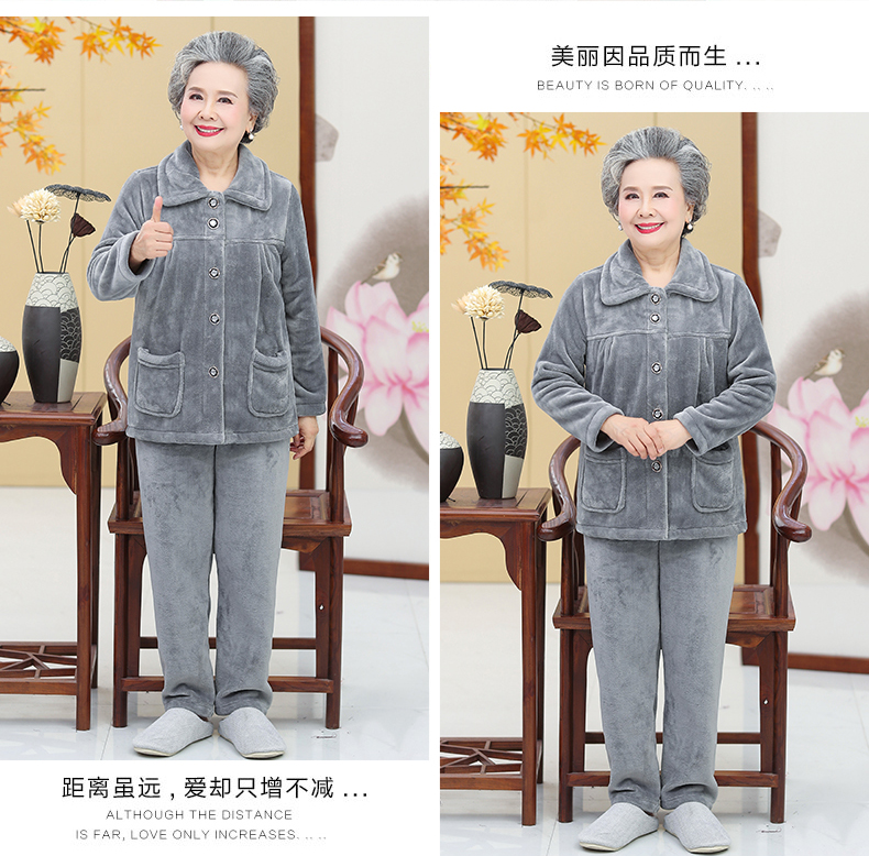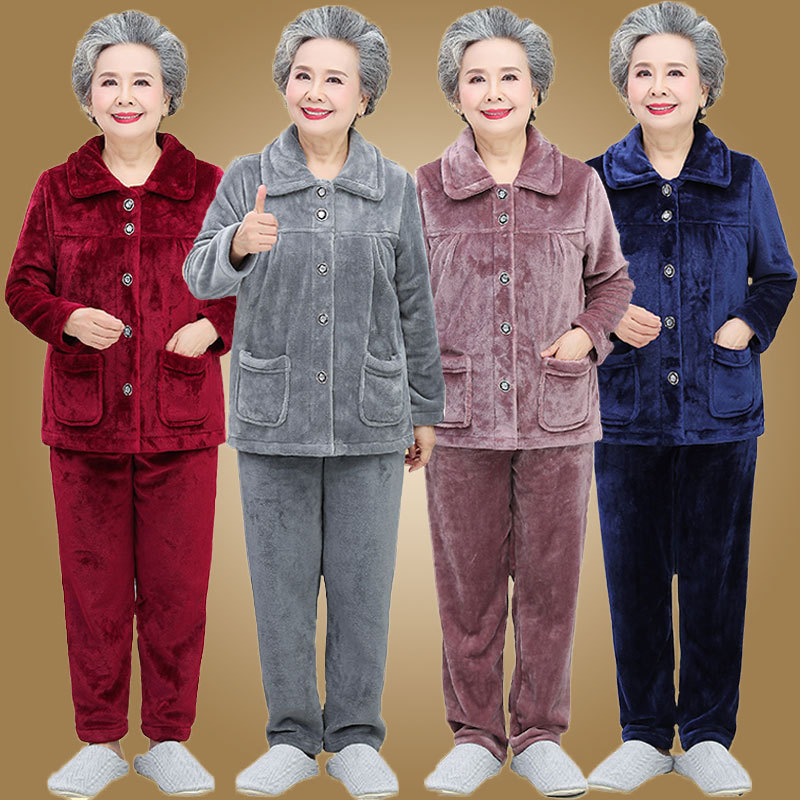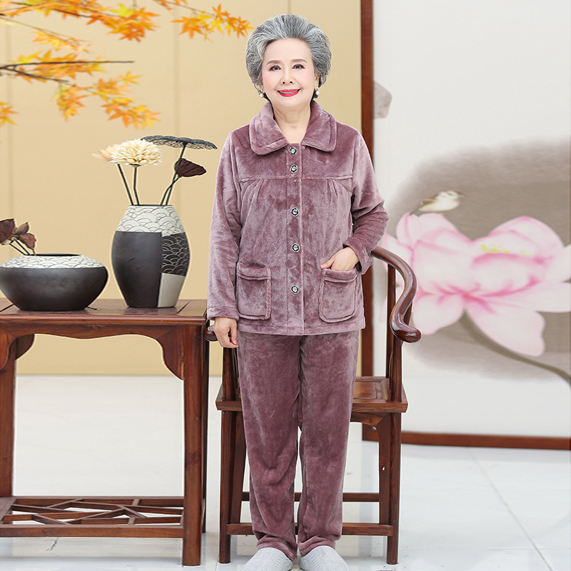 Утолщенные фланелевые пижамы для среднего и пожилого возраста, Женская осенне-зимняя одежда для мам, 60, Свободная Домашняя одежда больших размеров, костюм для бабушки
