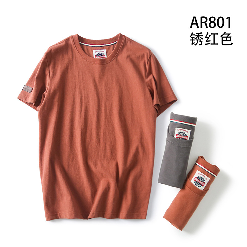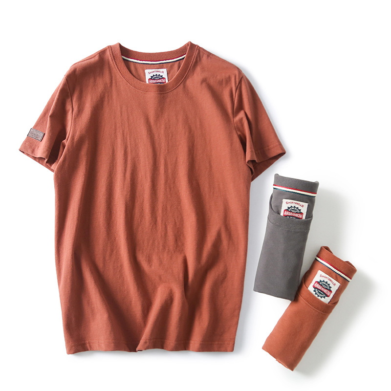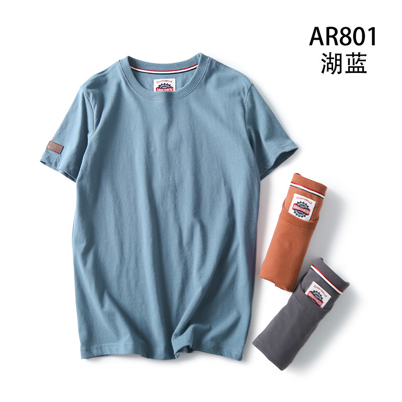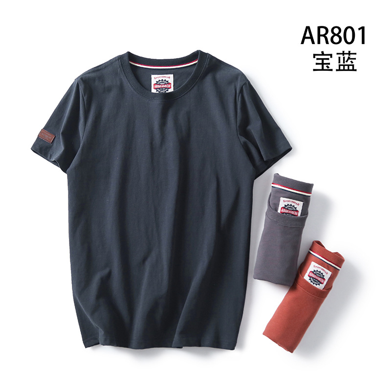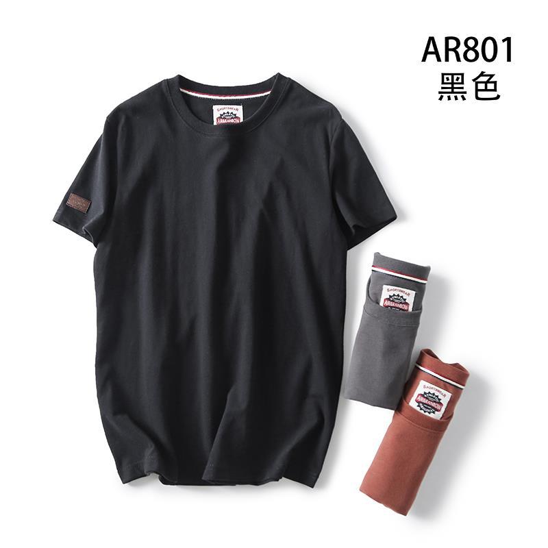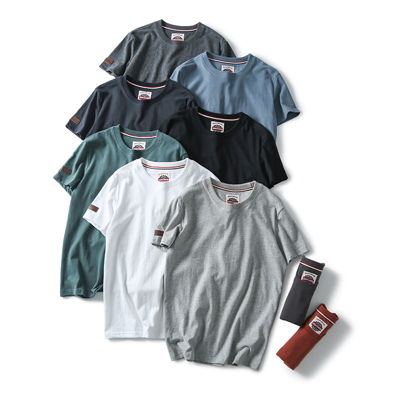 Декоративная отделка на рукавах! Однотонная, универсальная, 100% хлопок! Экспортный излишек: мужская летняя футболка с коротким рукавом, топ с короткими рукавами.