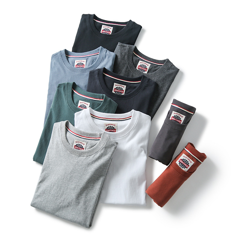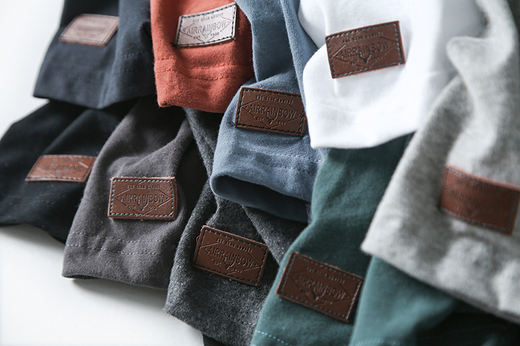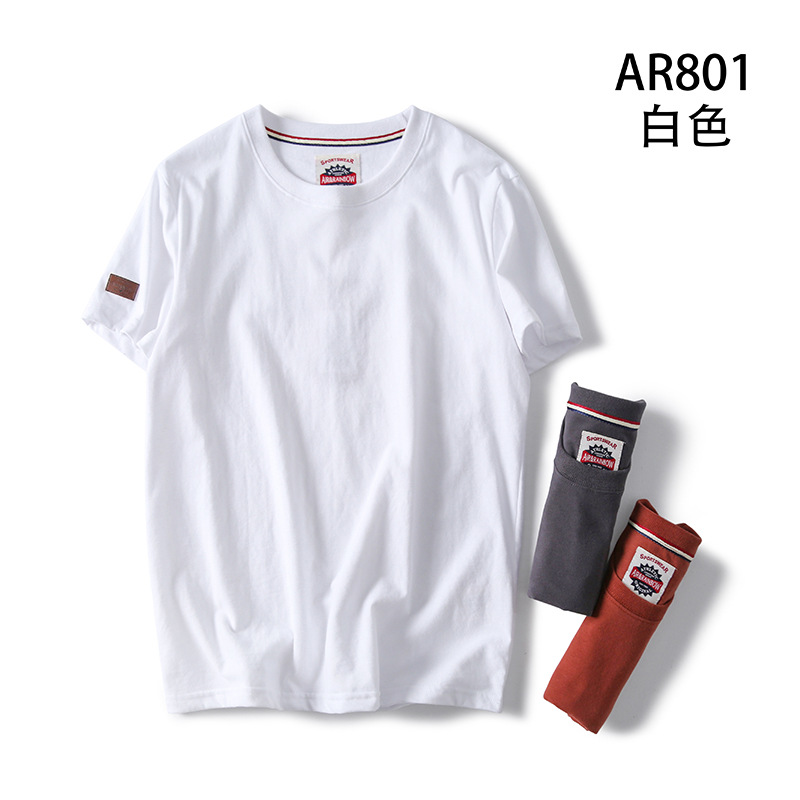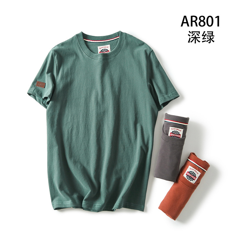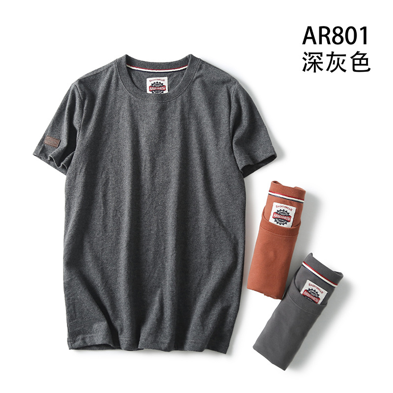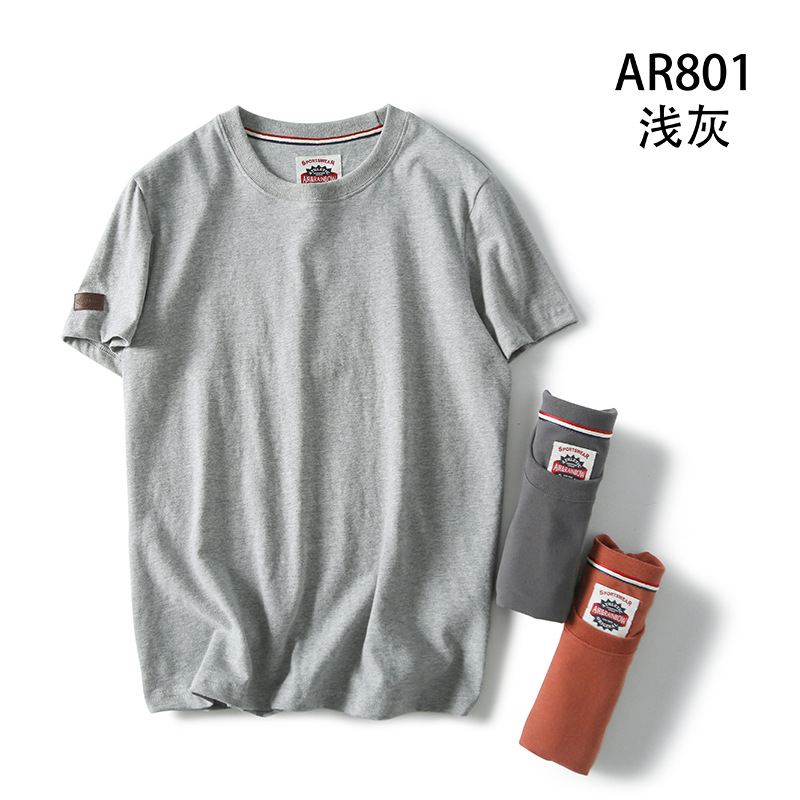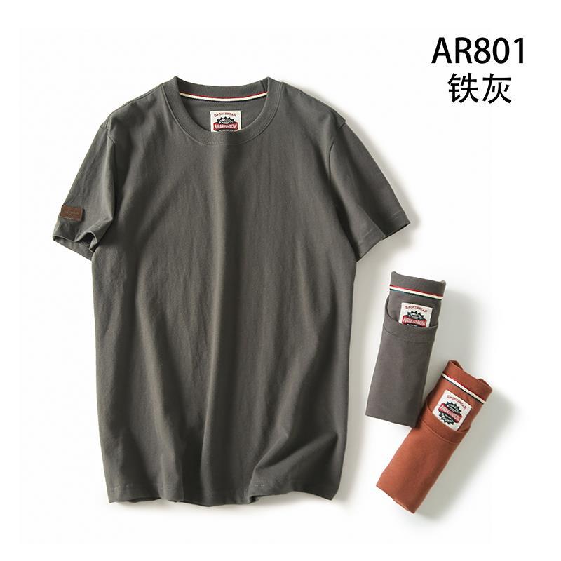 Декоративная отделка на рукавах! Однотонная, универсальная, 100% хлопок! Экспортный излишек: мужская летняя футболка с коротким рукавом, топ с короткими рукавами.