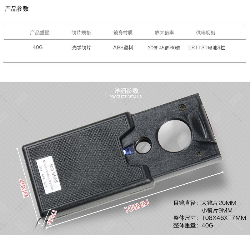 【功能】用于野外考查,珠宝鉴定,办公,印刷制造,家庭使用,看报,高清晰放大镜