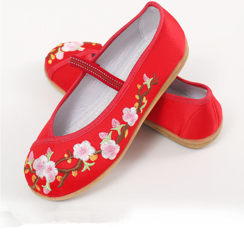 красные туфли с вышивкой; белые туфли с вышивкой; черные тканевые туфли