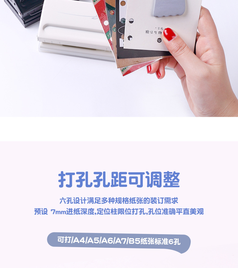 О продукте: 9170 Регулируемый штамповочный станок A7 студенческие канцелярские принадлежности 6 отверстий штамповочный станок флаер ручной счет отверстие для бумаги