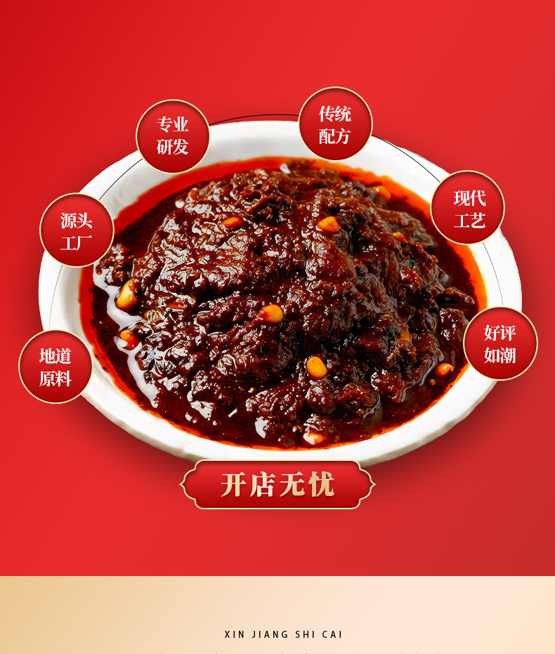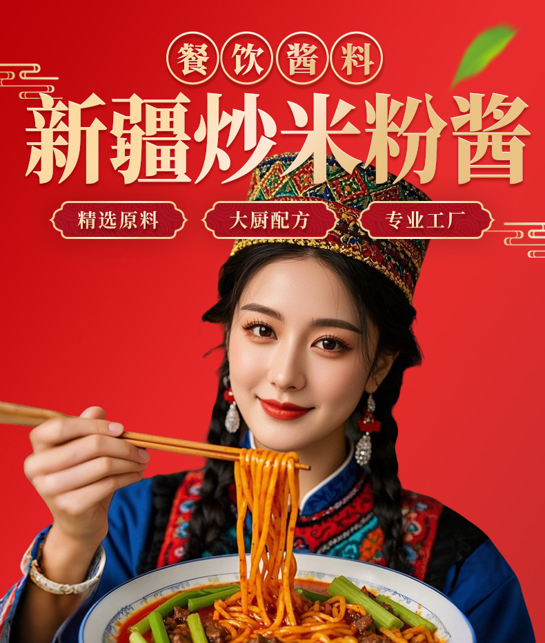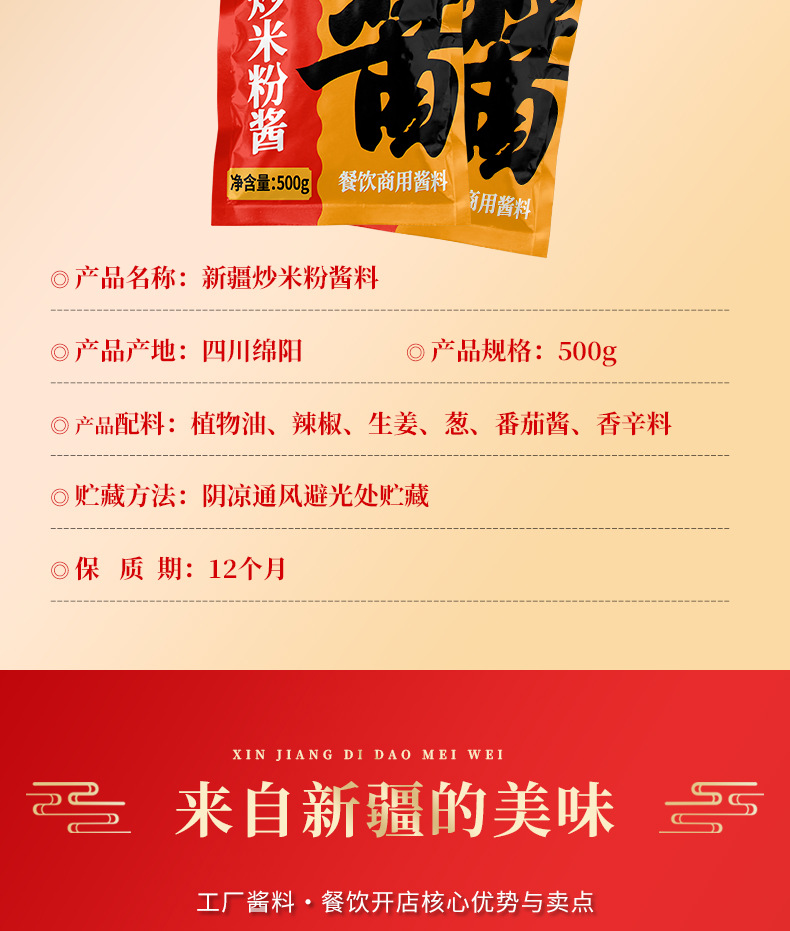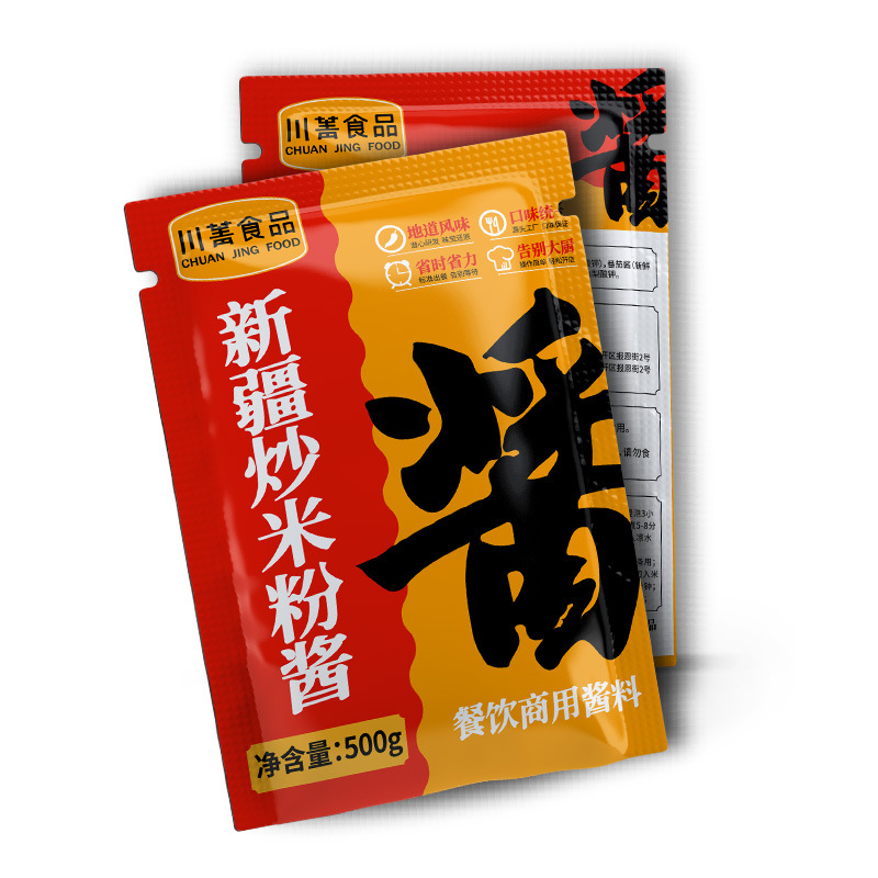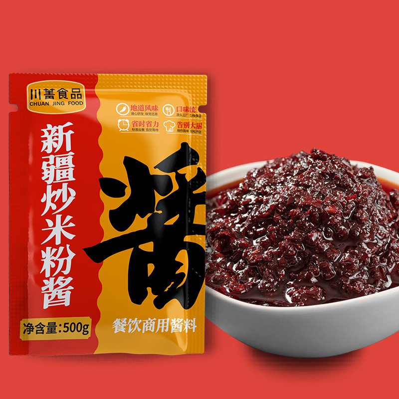 Специальный соус для острых жареных рисовых лапши Синьцзяна для открытия ресторана - слегка острый коммерческий соус для жареных рисовых лапши, упаковка из 0.5kg штук для оптовой продажи с фабрики.