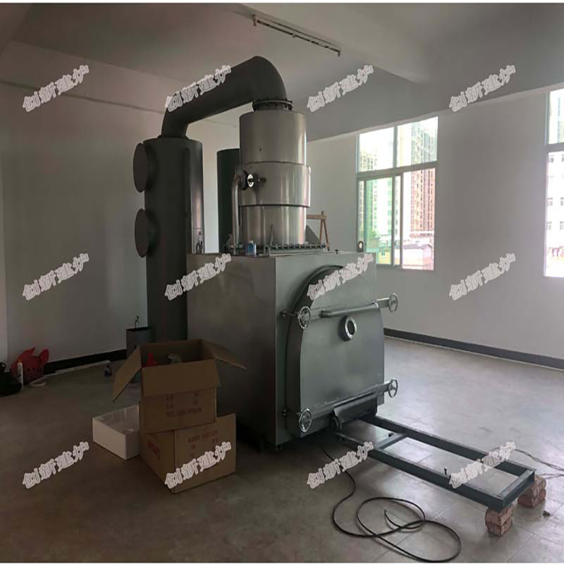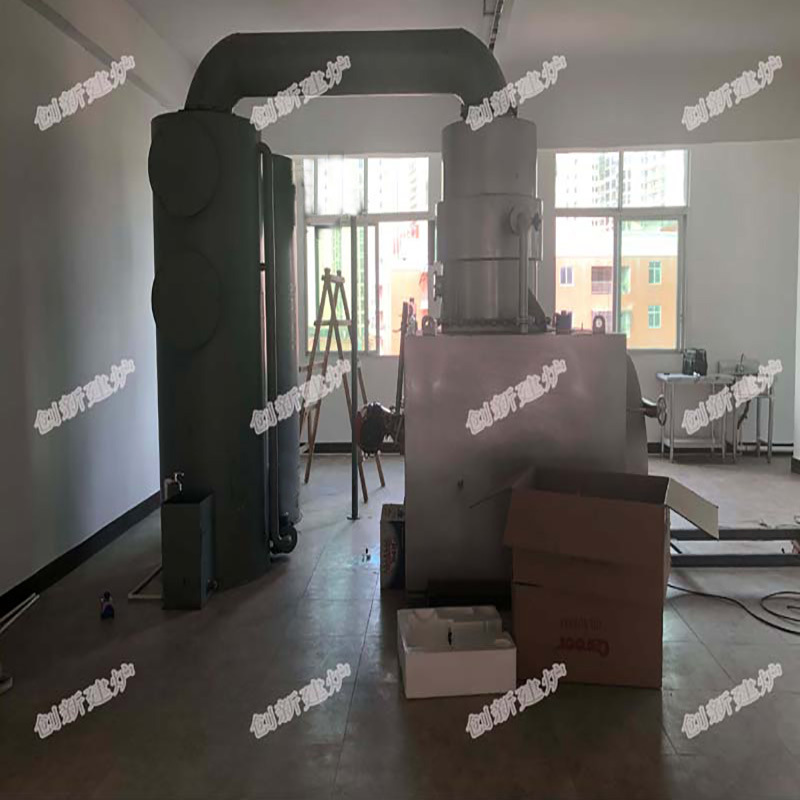 本厂宠物火化炉采用的是目前先进的一次热解回旋二次焚烧+燃尽处理的焚烧方式。该焚烧炉的一次燃烧室的设计由于采用了回旋焚烧技术使焚烧炉的炉内气温由650℃向1000℃推移,动物尸体在焚烧过程中不会产生熔块、渣块、烧结等问题。回旋焚烧炉与直燃炉及其它炉相比较,其粉尘产生量非常少,在二次混合焚烧室内设置有二次焚烧燃烧器装置。在高温下,烟气中可燃气体能够充分燃烧,可以高效率的把回旋炉所产生的气体与空气充分混合燃烧,防止气焰中的碳物质逸出和迟烧现象的发生。烟气在进入高温燃尽室时由于采用了回旋进入及助燃空气进入等助燃方式,使烟气在燃尽室内可以再次充分燃烧的同时利用旋转气流进行烟气除尘,焚烧烟气在炉内的停留时间大于5秒,使烟气中的可燃气体与飞灰中的可燃物完全焚烧,在焚烧炉的上部设有干式尾气净化设备,对焚烧中产生的氯化氢、硫氧化物等进行吸附处理,烟气中的臭气等成份在高温下被分解。净化尾气的目的。使烟气中有害成分降低至国家“危险废物焚烧污染控制标准(GB18484-2001)”等标准规定值以下。