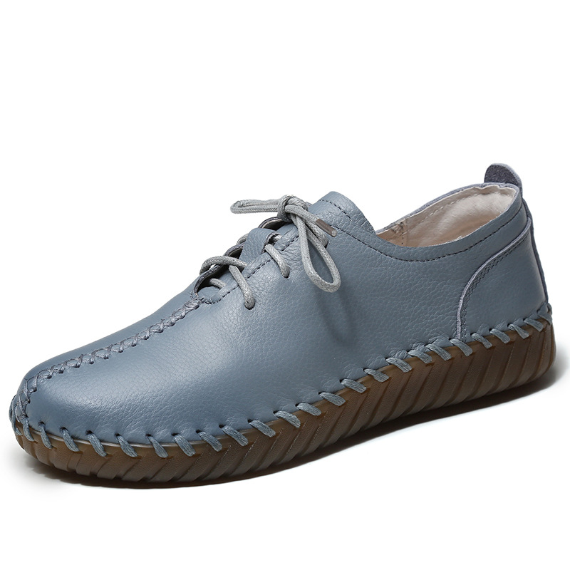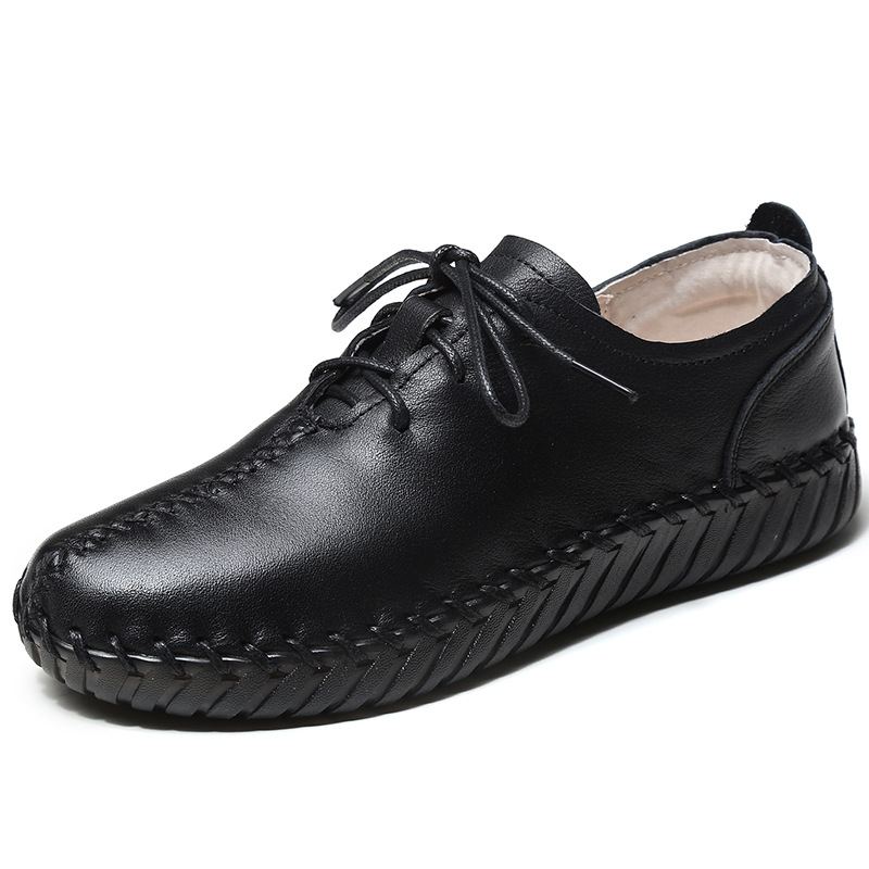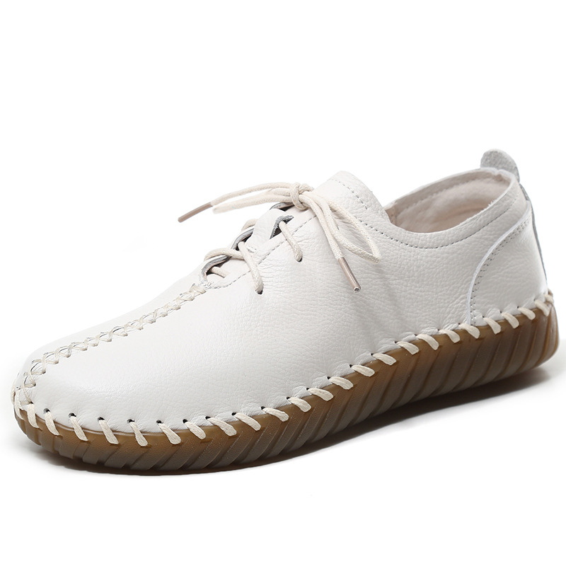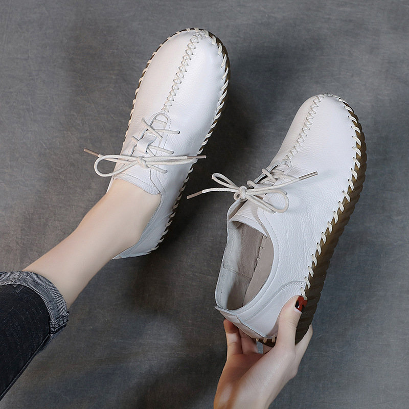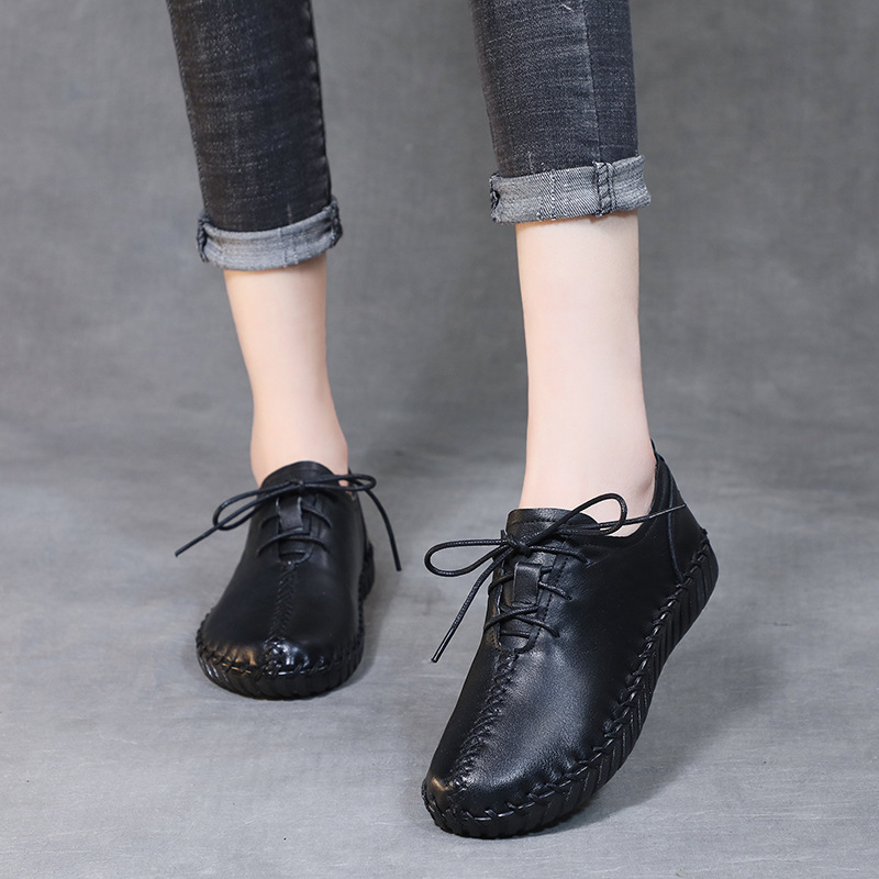 2024 Новый стиль кожаные женские одиночные туфли на первом этаже кожаные туфли ручной работы дикие туфли по беременности и родам туфли на шнуровке