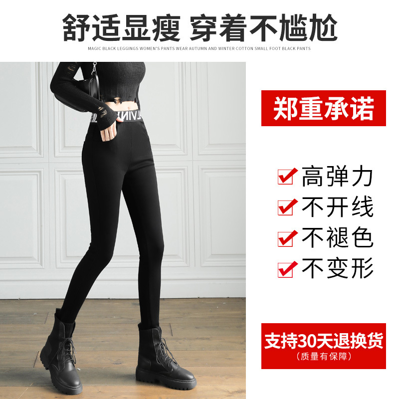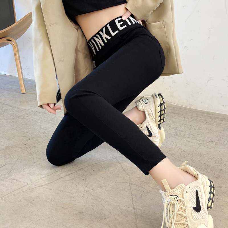 2021 черные леггинсы с буквенной талией Женская верхняя одежда весенне-осенние Волшебные леггинсы Маленькие черные брюки с высокой талией для похудения девять баллов