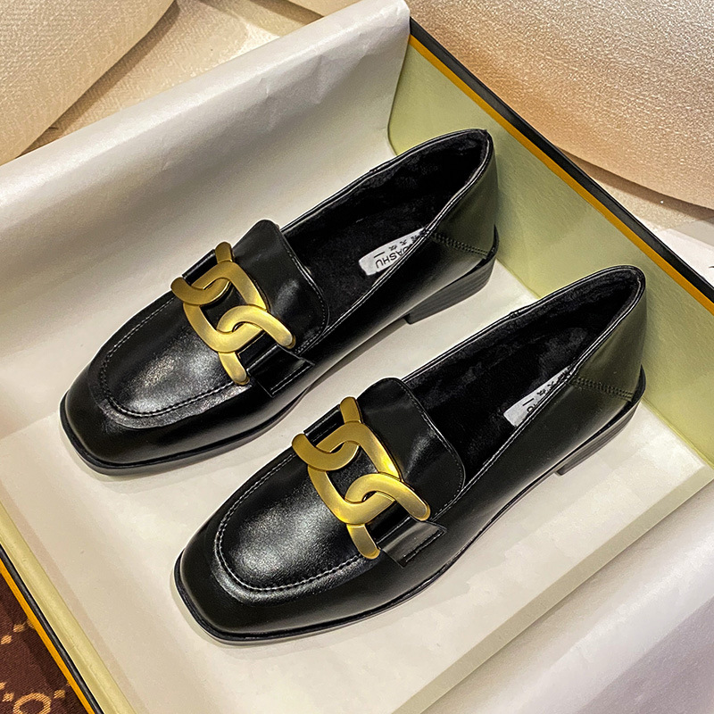 Женские лоферы 2025 г., маленькие кожаные туфли в британском стиле, туфли на плоской подошве, осенне-зимние женские туфли на флисовой подкладке большого размера, тонкий стиль от 4 до 43