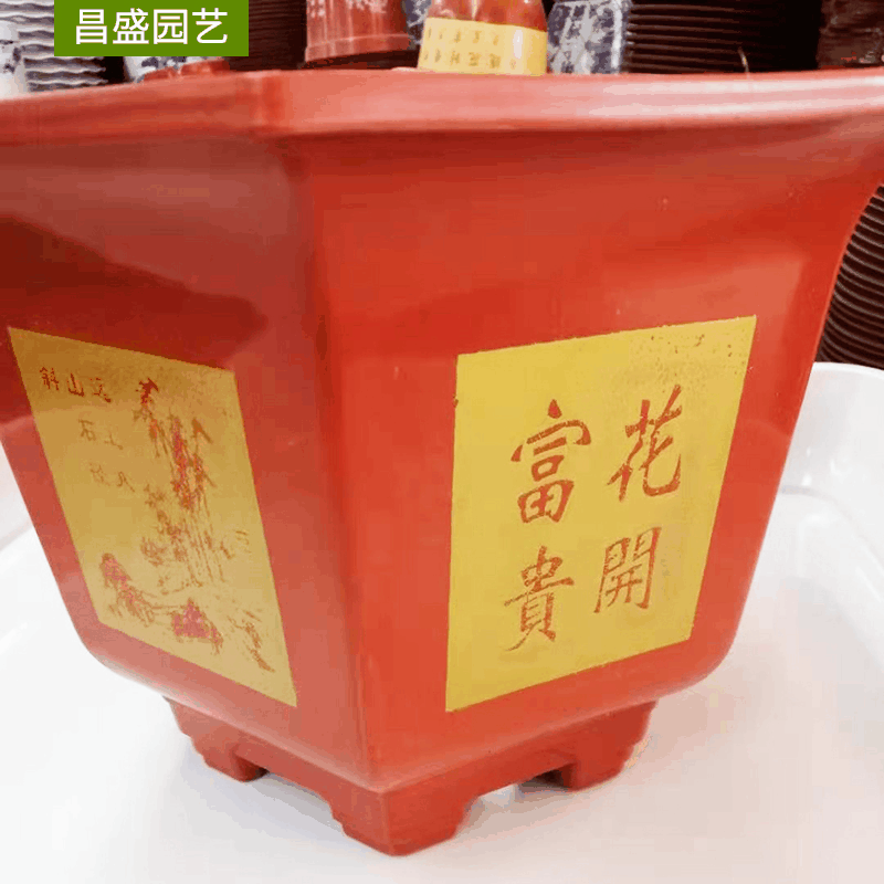 Шестиугольный утолщенный пластиковый цветочный горшок, винтажный китайский стиль, для пионов, роз, бонсай, шестиугольный цветочный горшок
