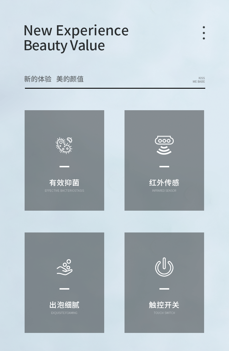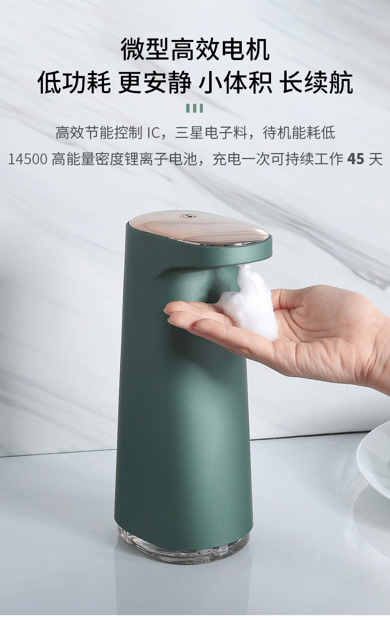 产品相同外观有三种不同出液方式,分别为泡泡款、喷雾款、凝胶款,该链接默认为泡泡款,产品机身常规颜色有墨绿色、浅绿色、粉色、白色、黑色五种,上盖有金色、银色、木纹色三种,支持已有机身和上盖颜色混合搭配,如白色机身搭配银色上盖等,支持贴牌、彩盒、说明书等各种定制,详情可咨询客服~