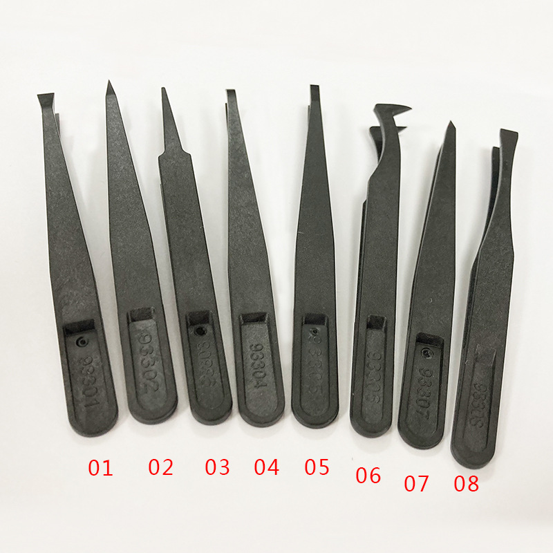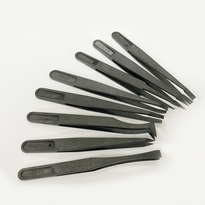 Пинцет черный пластиковый углепластик 93301/2/3/4/5/6/78 Широкий рот плоская головка с круглой головкой