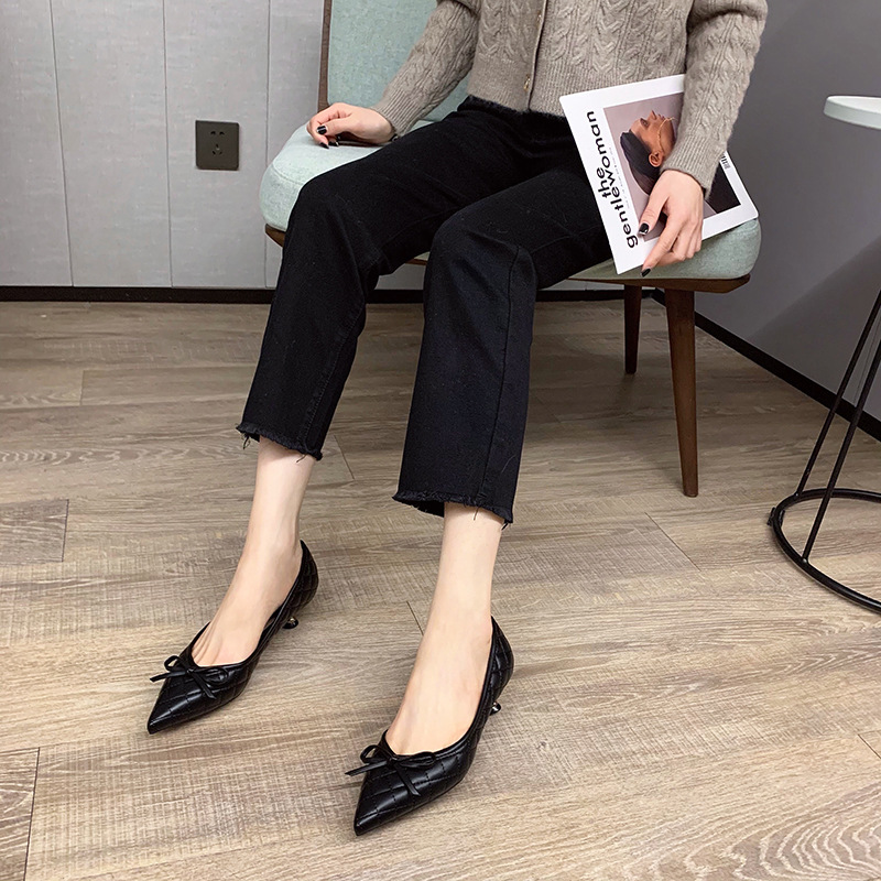 Женские туфли на каблуке 3 см с бантом, универсальные, сексуальные, с острым носком, для работы, модель 315-1
