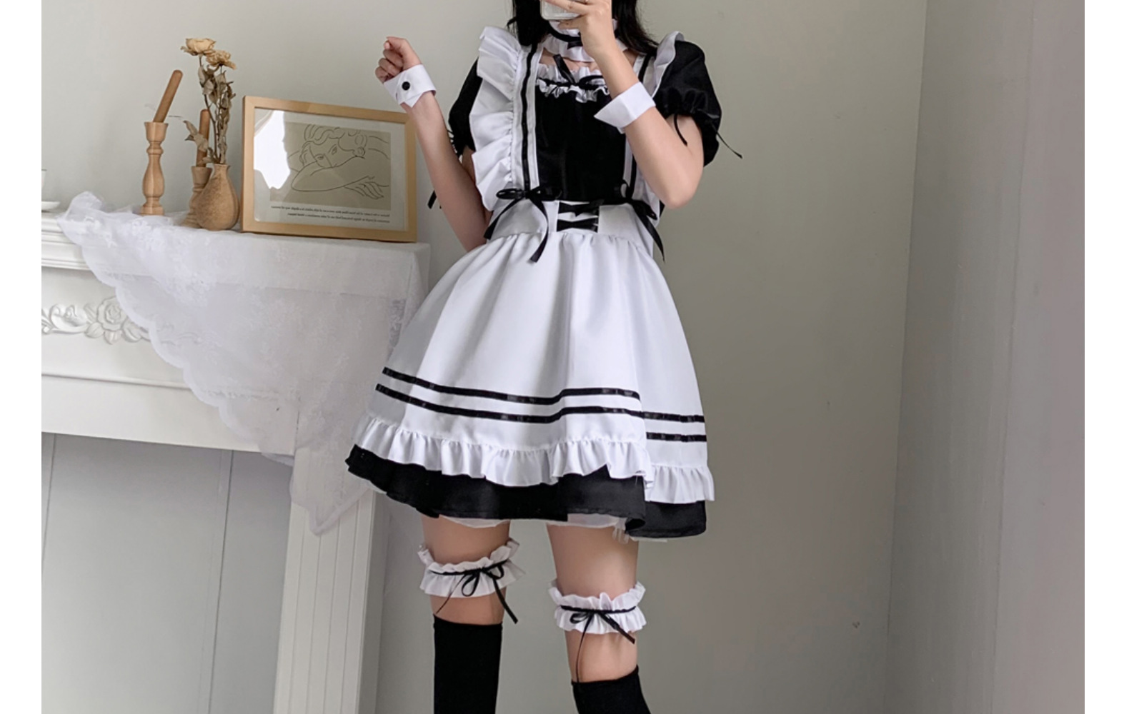 Японское черно-белое платье горничной Женский большой брат Ежедневно Лори горничная Симпатичное платье лолиты больших размеров
