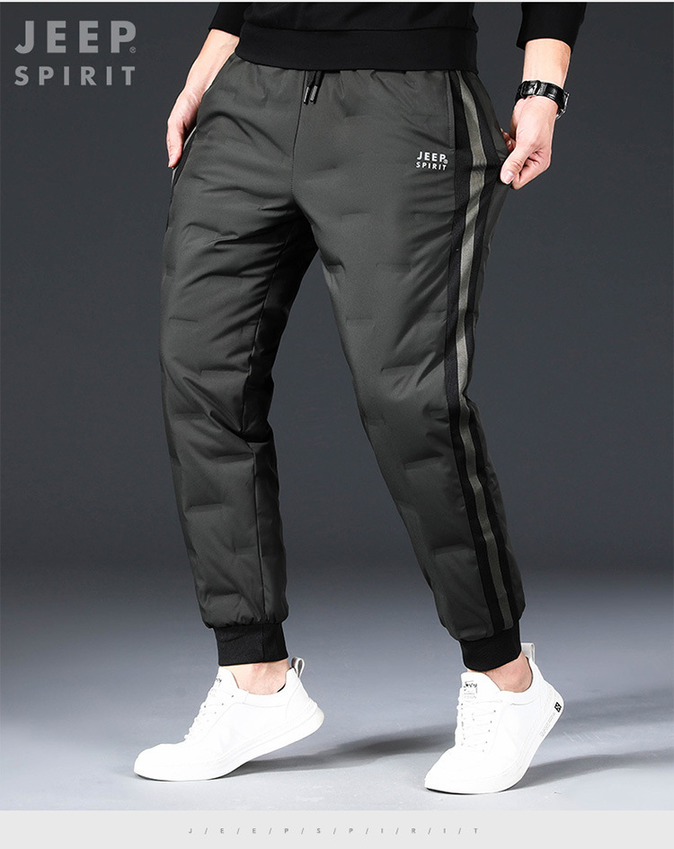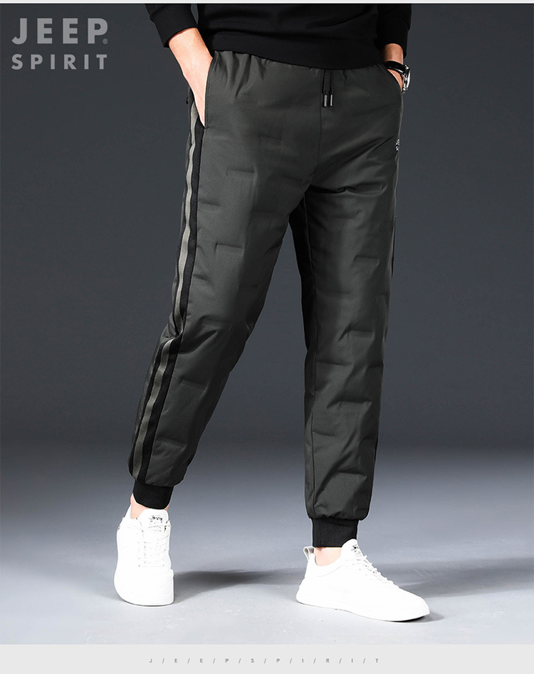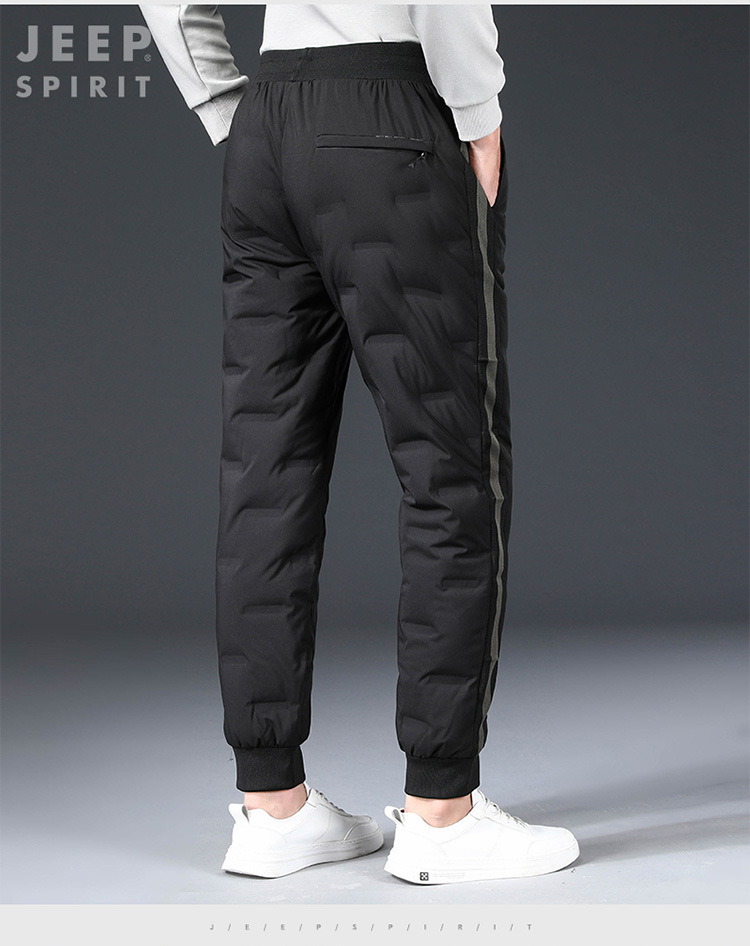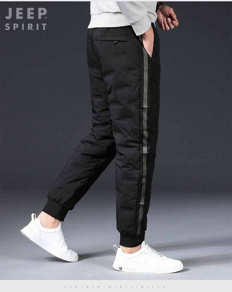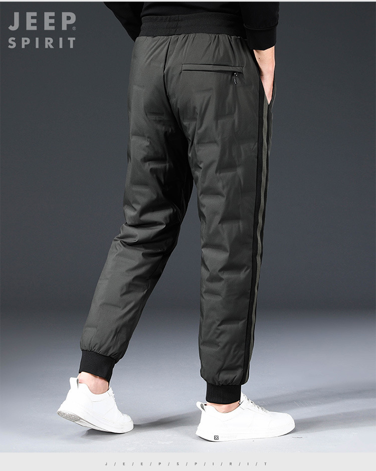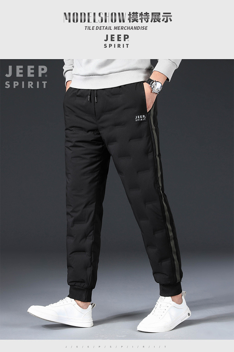 Джип, зимние толстые теплые пуховые брюки больших размеров, мужские деловые повседневные белые брюки на утином пуху с завязкой на щиколотке 0612
