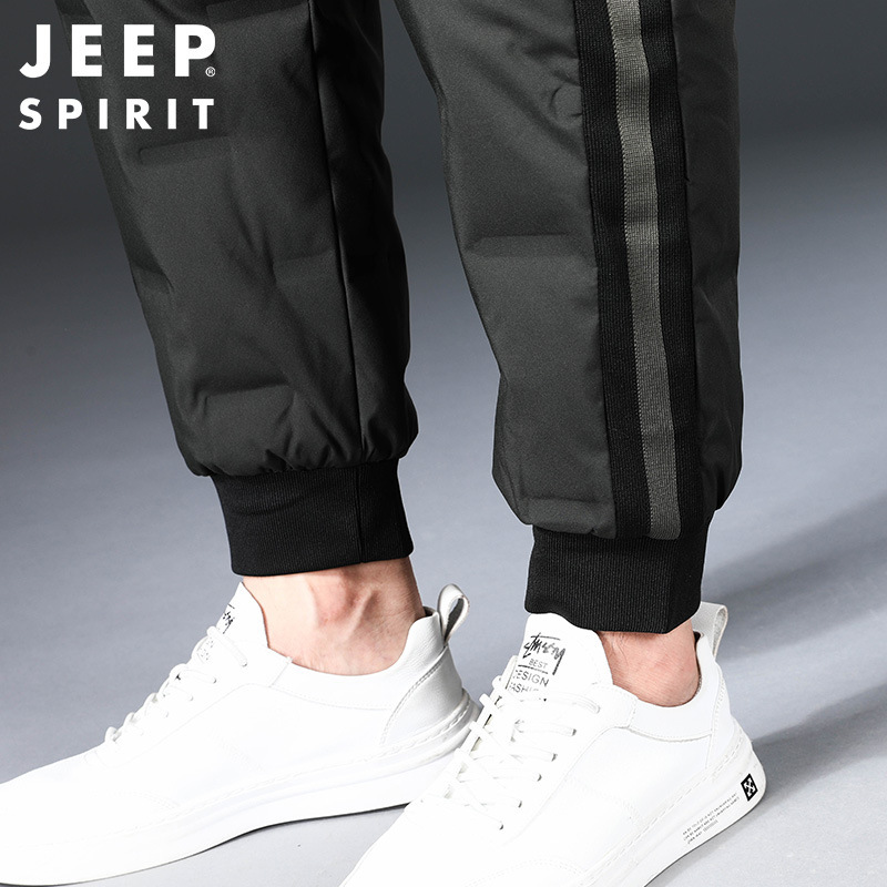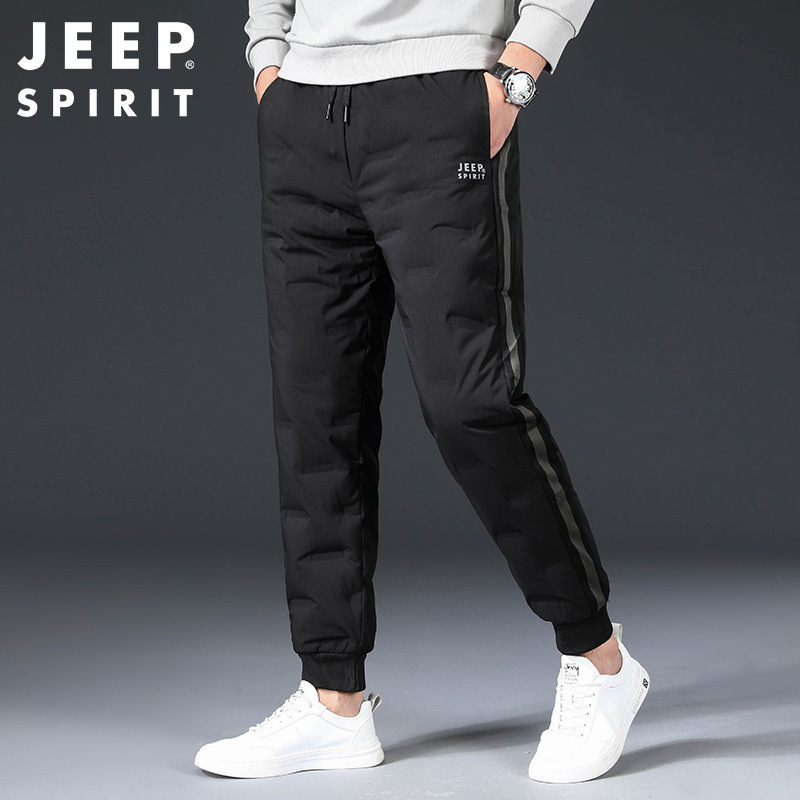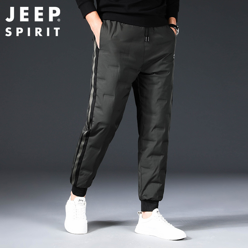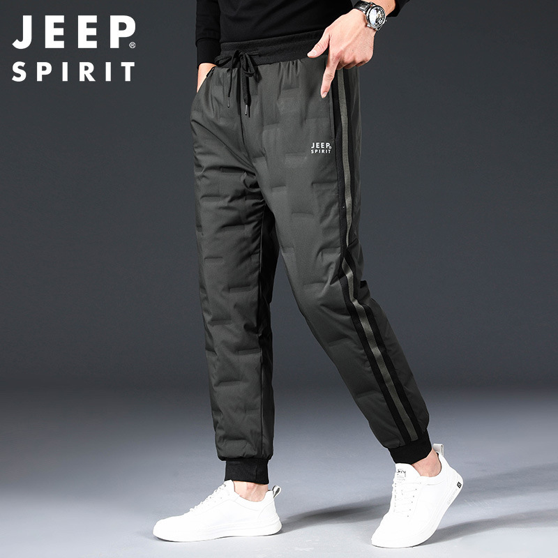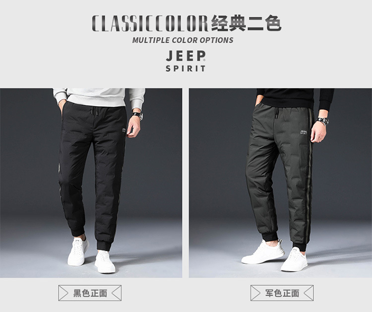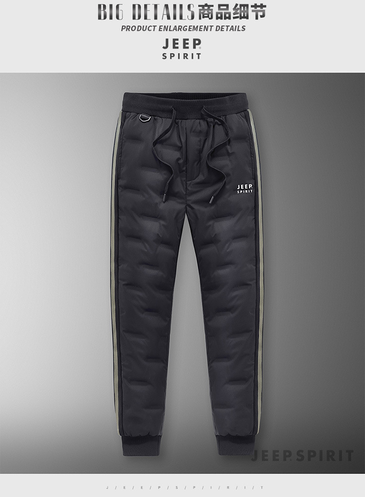 Джип, зимние толстые теплые пуховые брюки больших размеров, мужские деловые повседневные белые брюки на утином пуху с завязкой на щиколотке 0612