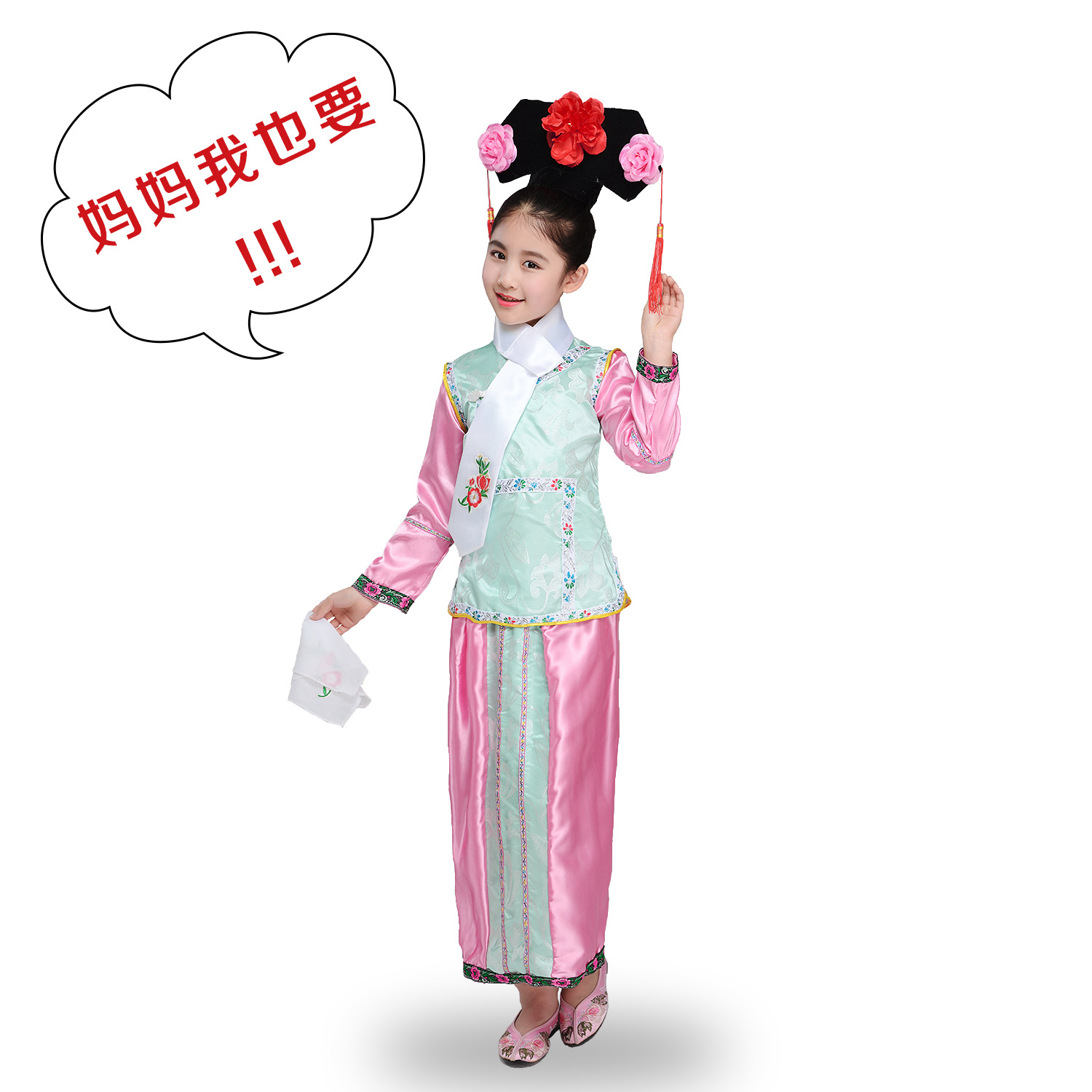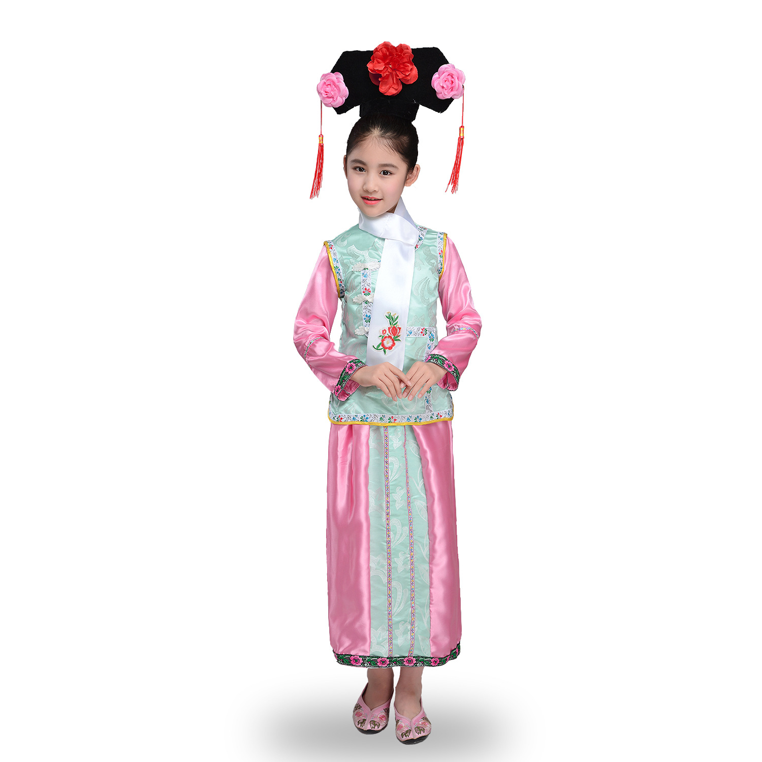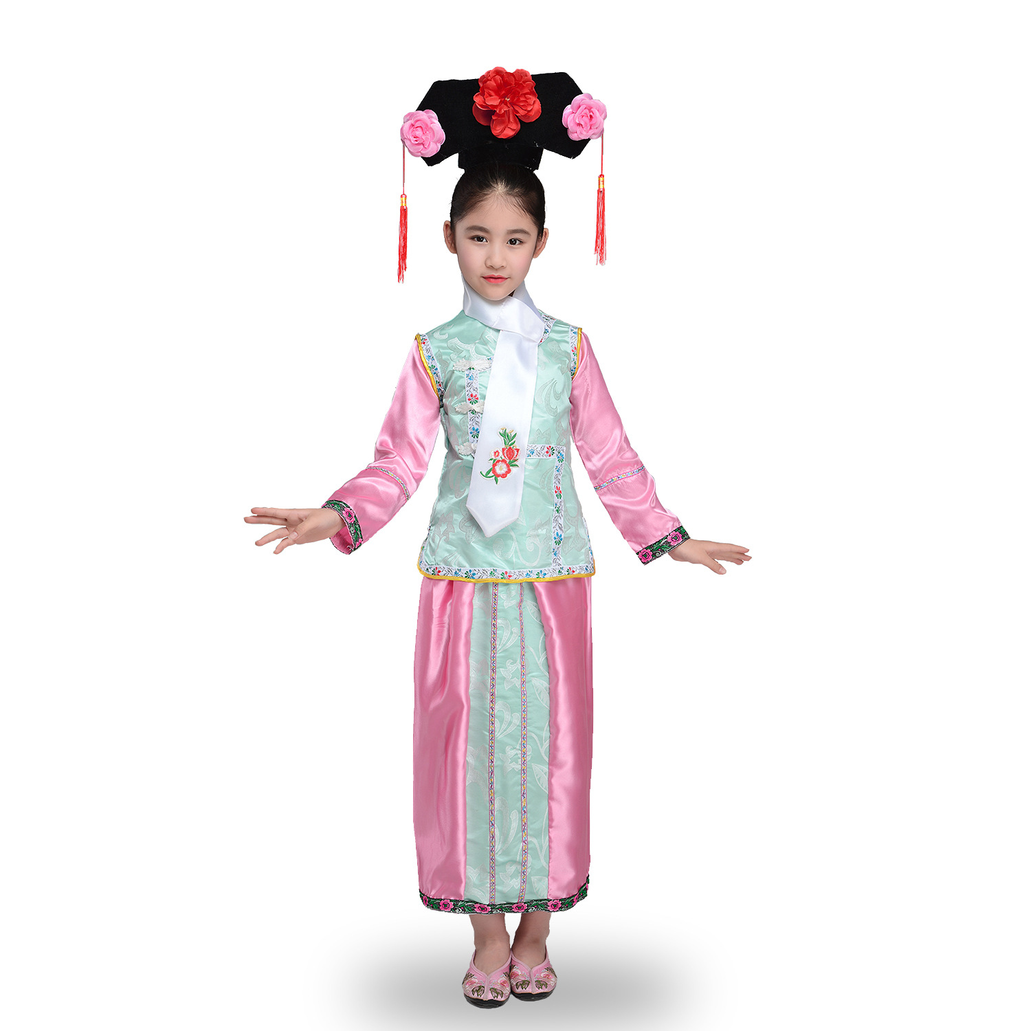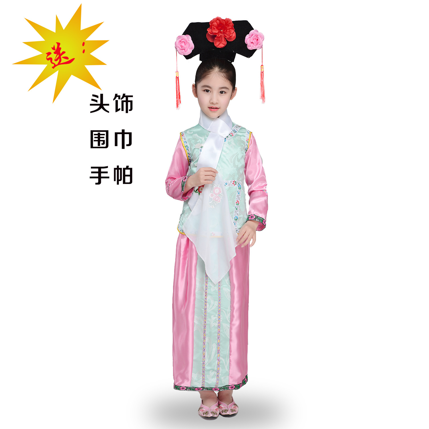 Танец Юньчуань Есть девочка и детский древний костюм. Династия Цин вернула жемчуг и Маньчжурский придворный костюм девушки