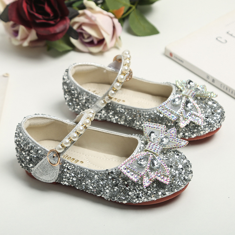2024 весна и осень новые ледяные кожаные туфли маленькие кожаные хрустальные туфли с блестками детские туфли принцессы Аиши хрустальные туфли