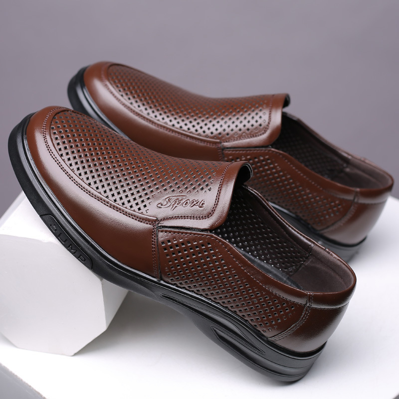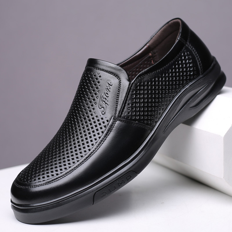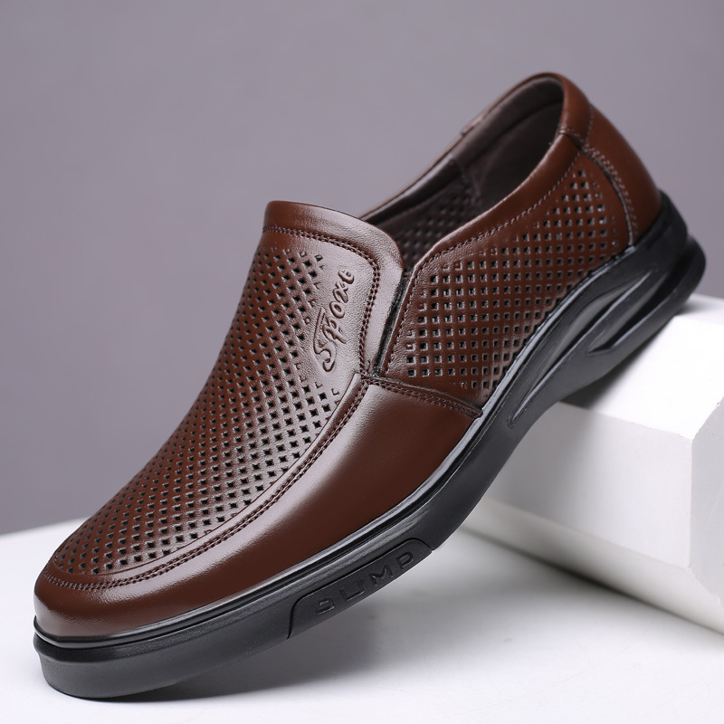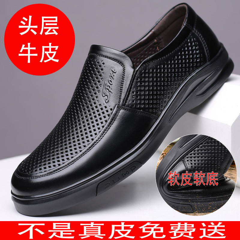 Обувь из воловьей кожи с верхним слоем, деловая повседневная кожаная обувь, мужские туфли с полыми отверстиями, британские повседневные мужские кожаные сандалии без шнуровки