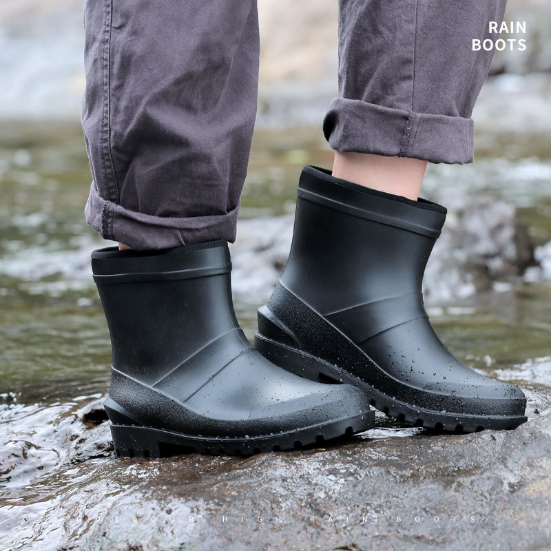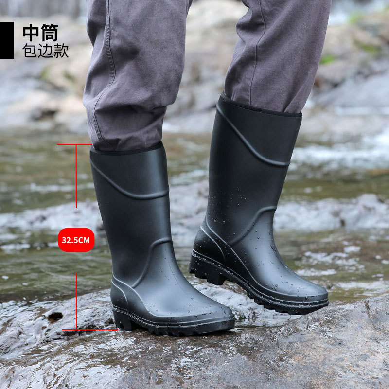 Резиновые сапоги средней высоты, Нескользящие бахилы, большие размеры, мужские ботинки из говяжьих сухожилий, водонепроницаемая резиновая обувь для рыбалки, охрана труда, Рабочие резиновые сапоги