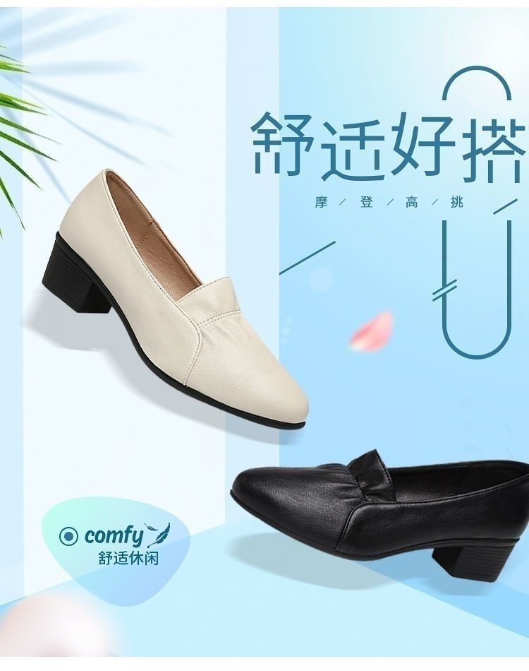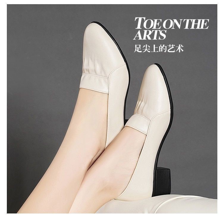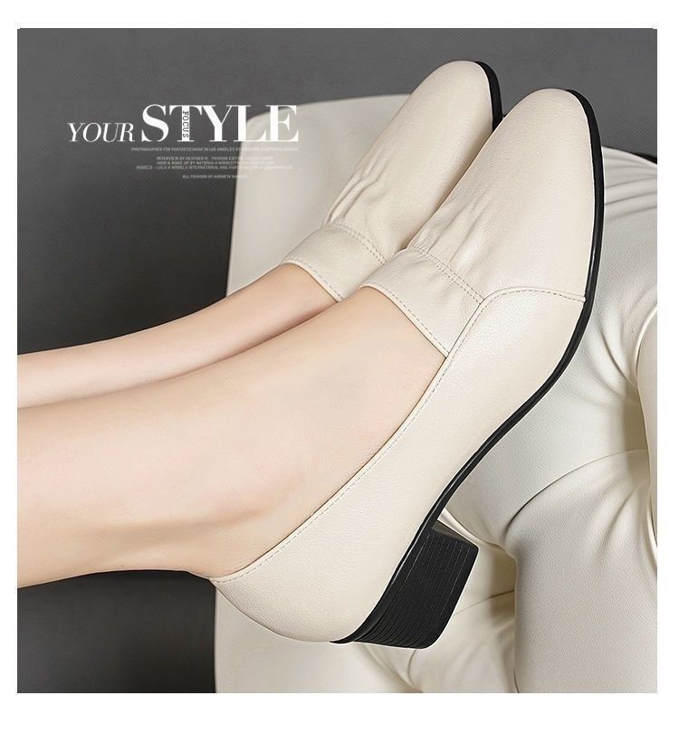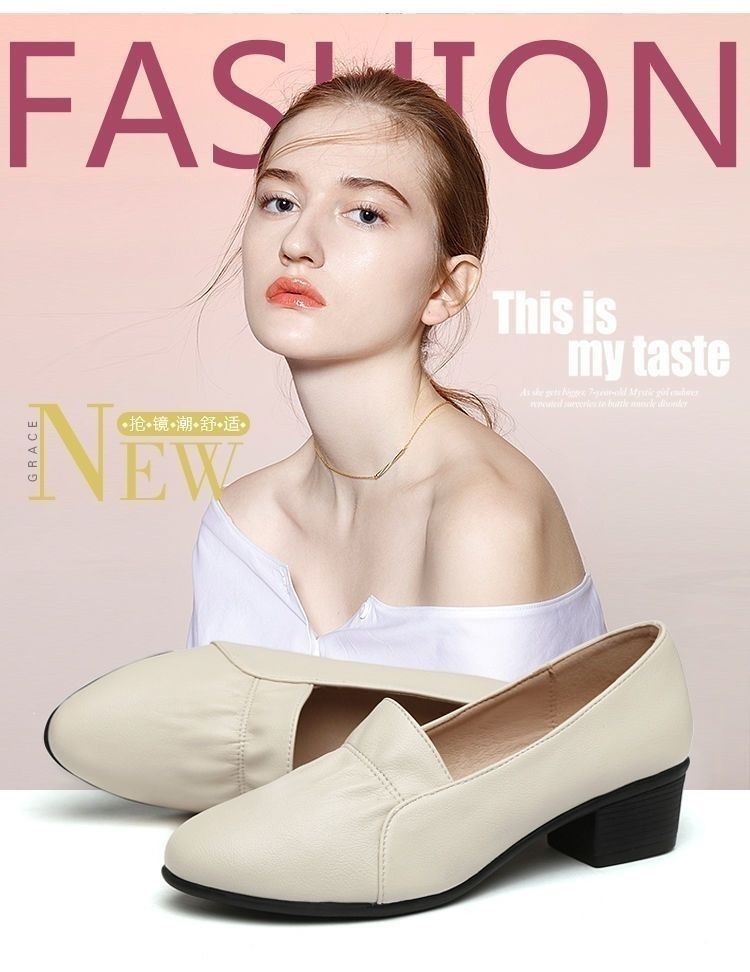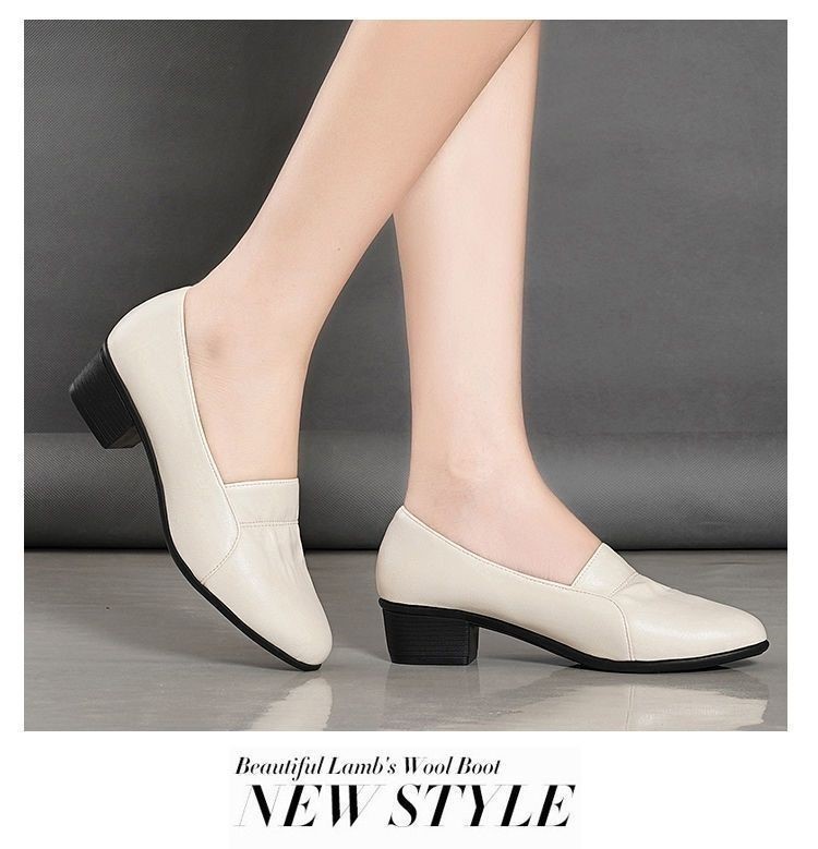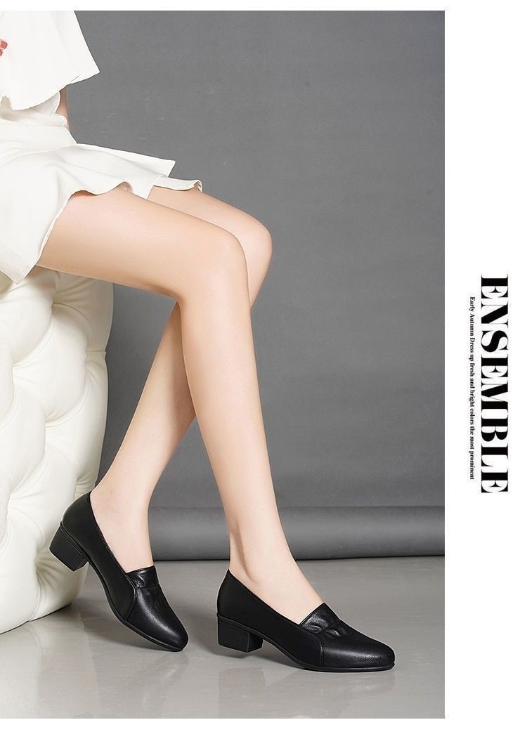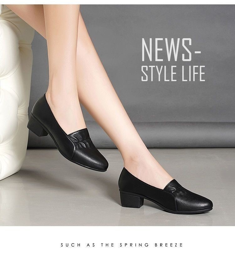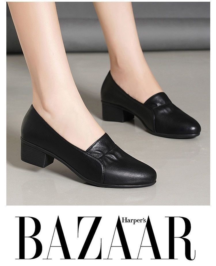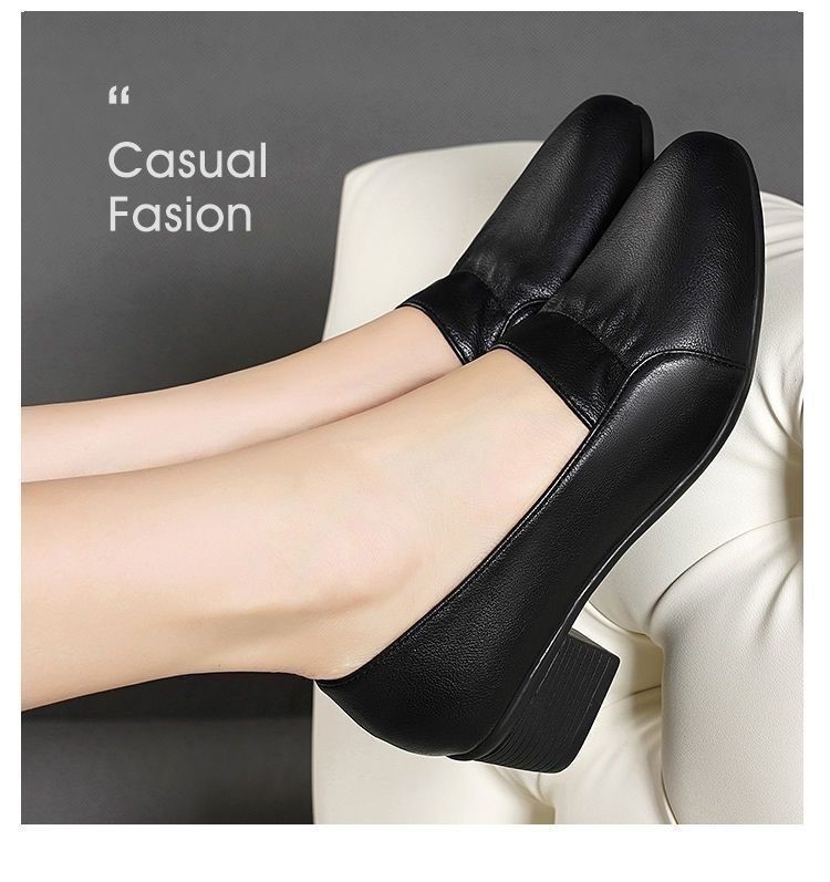 2021 лето новая женская обувь среднего возраста обувь мама обувь одиночная обувь женская нескользящая мягкая подошва на толстом каблуке удобная повседневная рабочая кожаная обувь