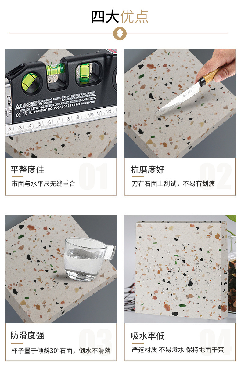 Завод-производитель неорганического терраццо: цветные тротуарные плиты, столешницы, напольные покрытия, облицовка стен, обработка и изготовление искусственного камня на заказ.