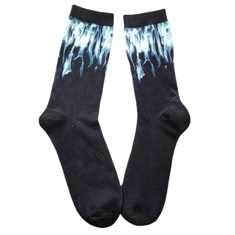 Лето, весна и осень, тонкие окрашенные носки из чесаного хлопка, мужские носки средней длины, европейские и американские модные уличные носки с принтом 360 °