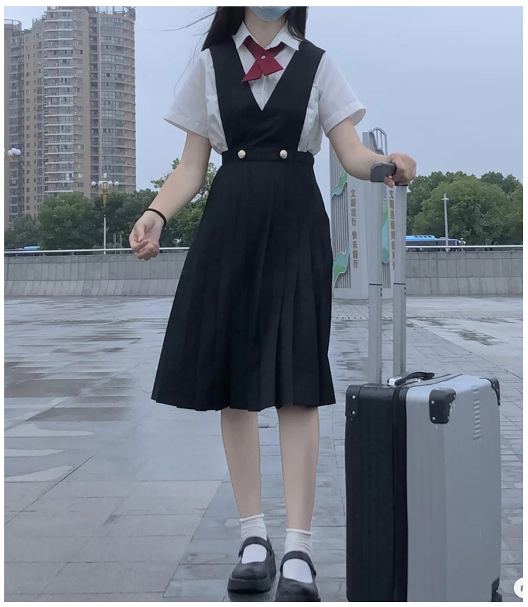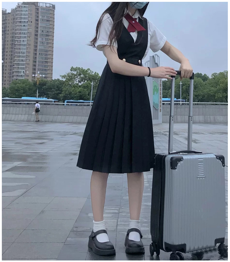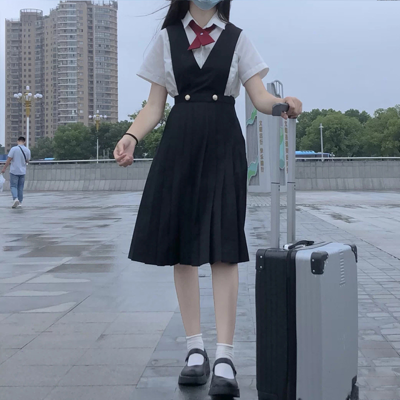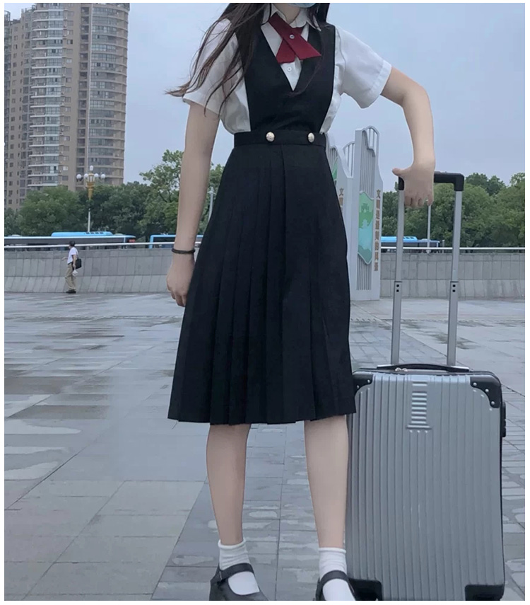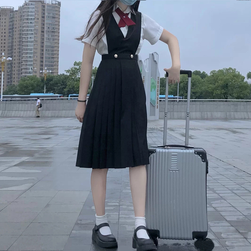 Толстая цветная юбка для защиты груди JK, униформа, длинная юбка, плиссированная юбка, черный студенческий жилет, платье на подтяжках, классная униформа, свежая