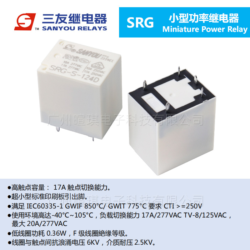 Реле Sanyou SRG-S-105DM, 17А, 12В/24В, четырехконтактное/пятиконтактное, маломощное реле